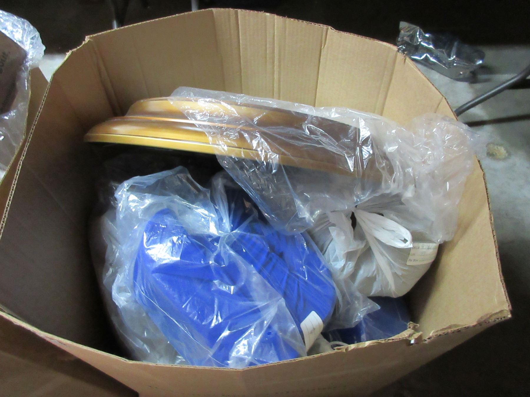LARGE BOX OF ASSORTED GOODS (ATOMIC WALL CLOCK, LINEN, ASSORTED MISC) B2