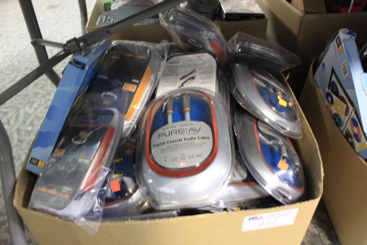 LARGE BOX OF AV CABLES/SUPPLIES