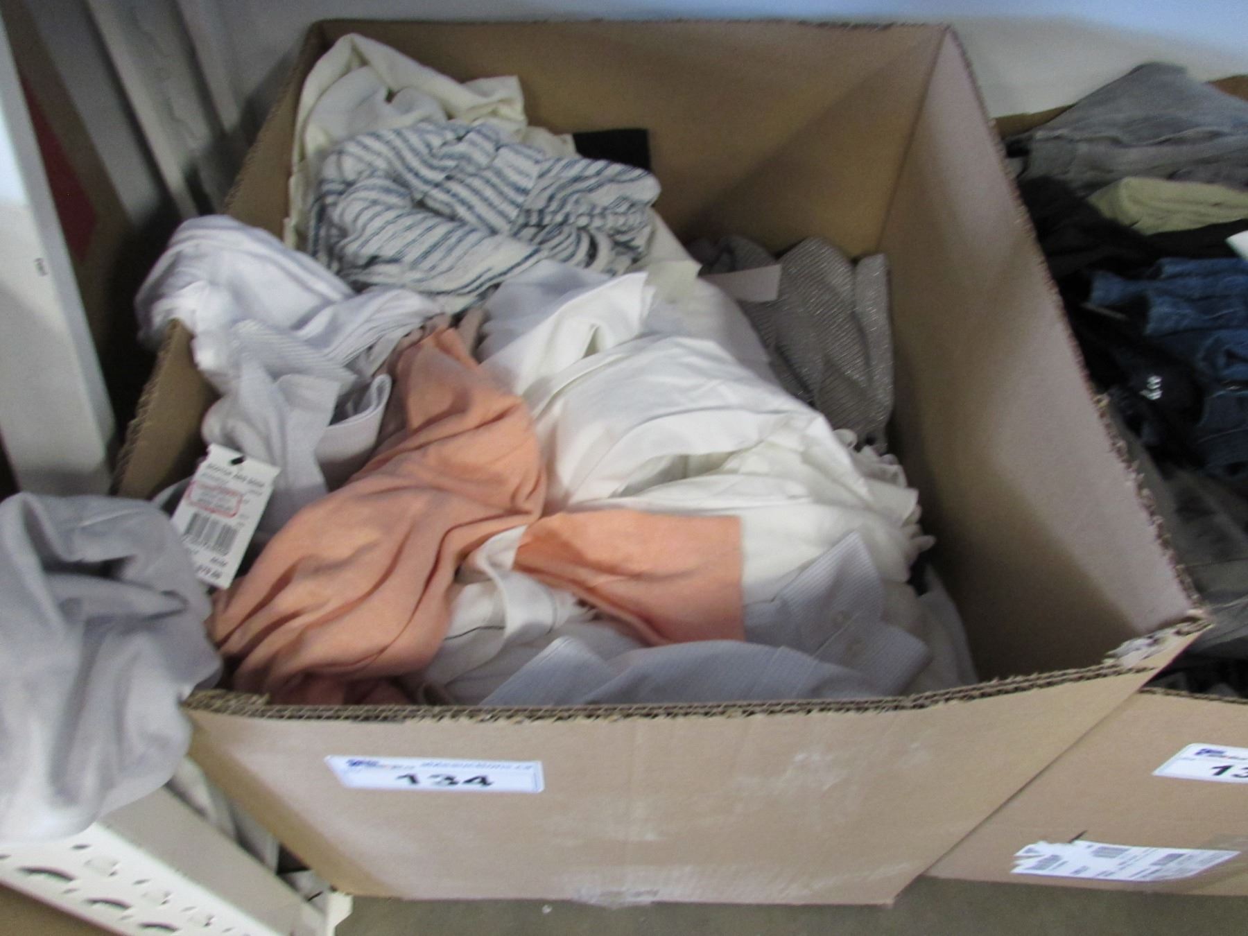 LARGE BOX OF DRESS SHIRTS, SWEATERS, WOMENS TOPS, ETC