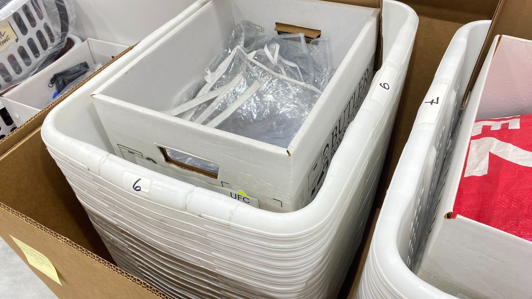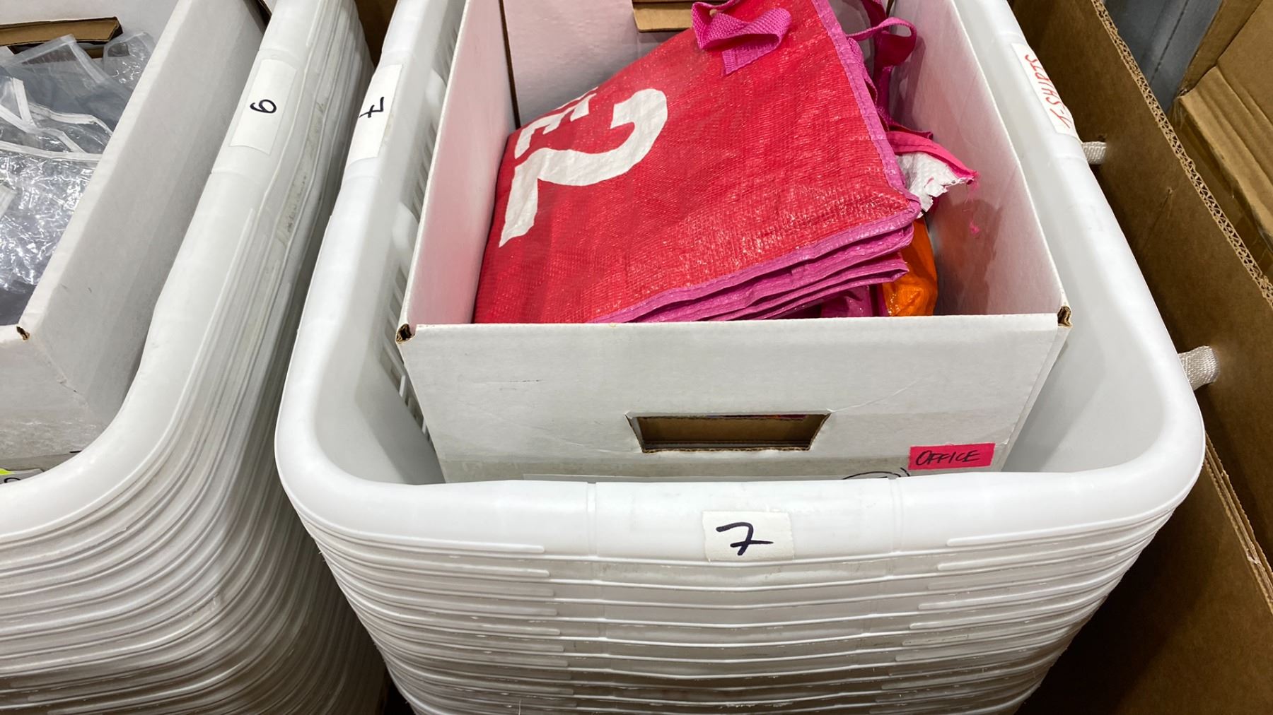 LARGE BOX OF LAUNDRY BASKETS & ASSORTED BAGS
