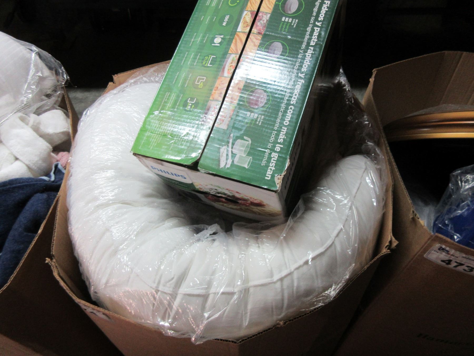 LARGE BOX OF PASTA MAKER, BODY PILLOW, LINEN, ASSORTED MISC B2