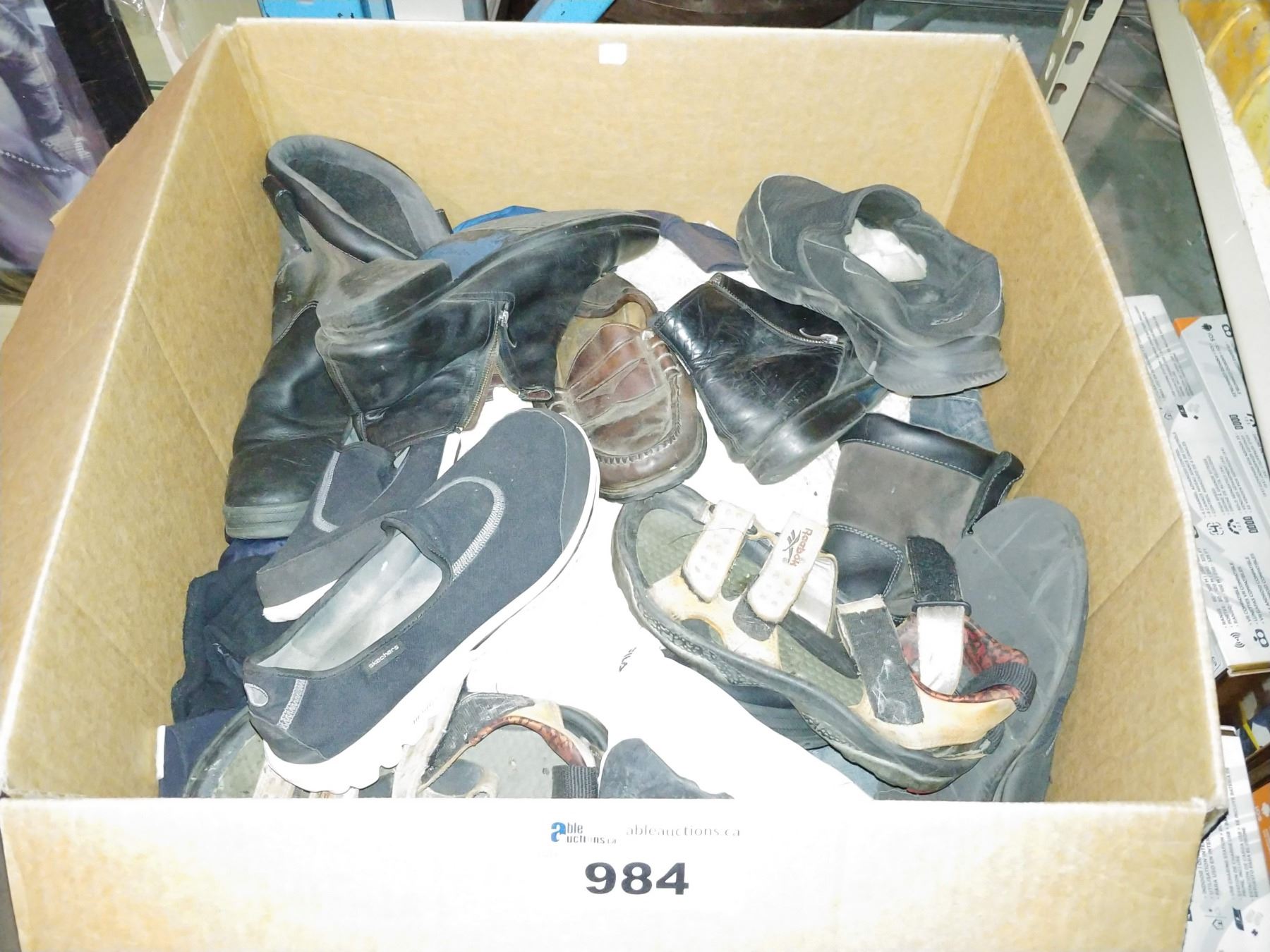 LARGE BOX OF SHOES, CLOTHES AND MORE