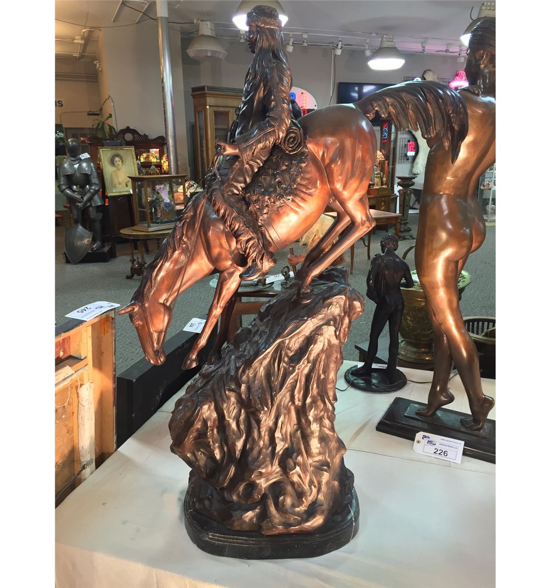 LARGE BRONZE INDIAN ON HORSE SIGNED S. KELIAM