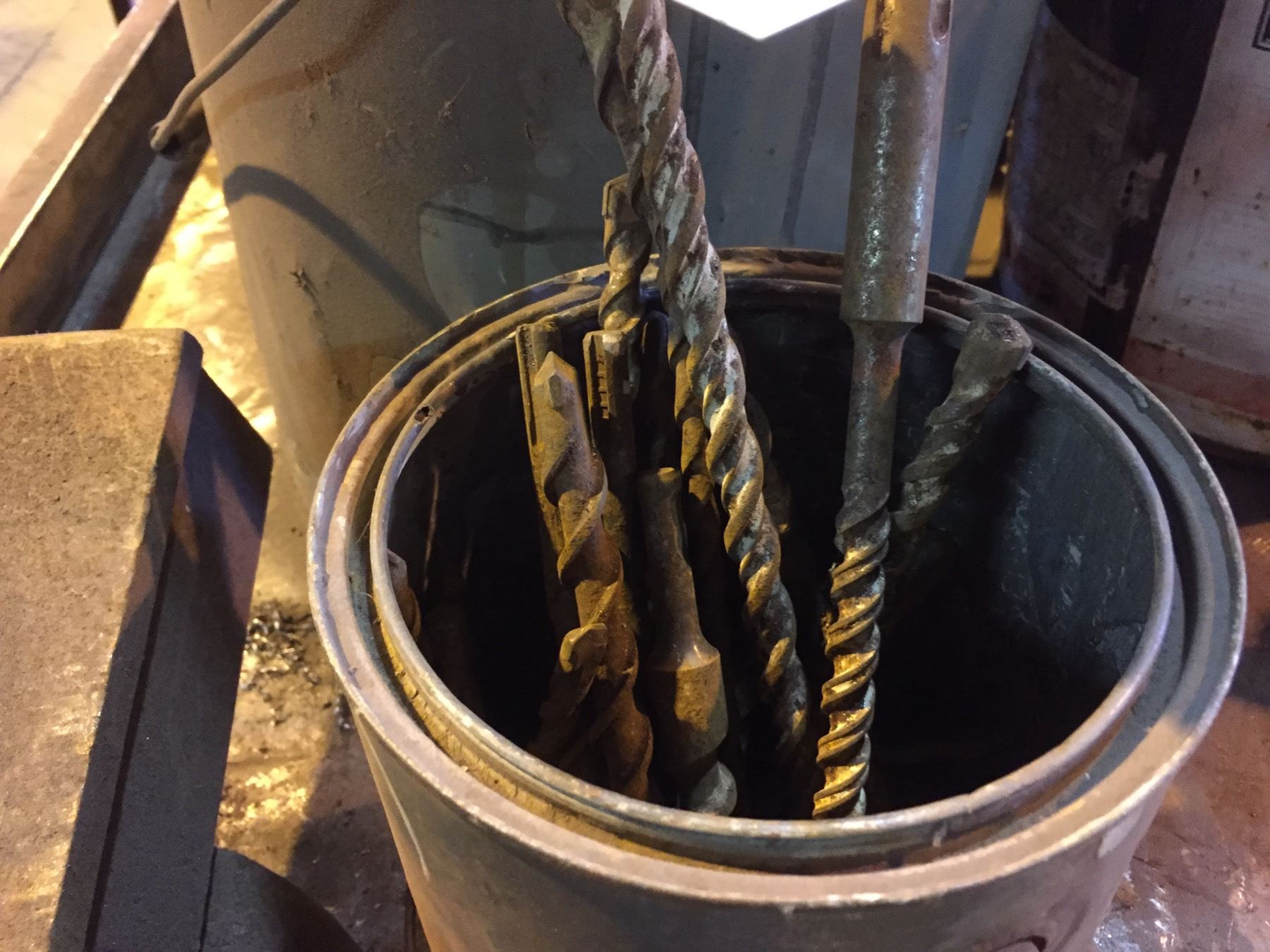 LARGE BUCKET OF ASSORTED LARGE DRILL BITS