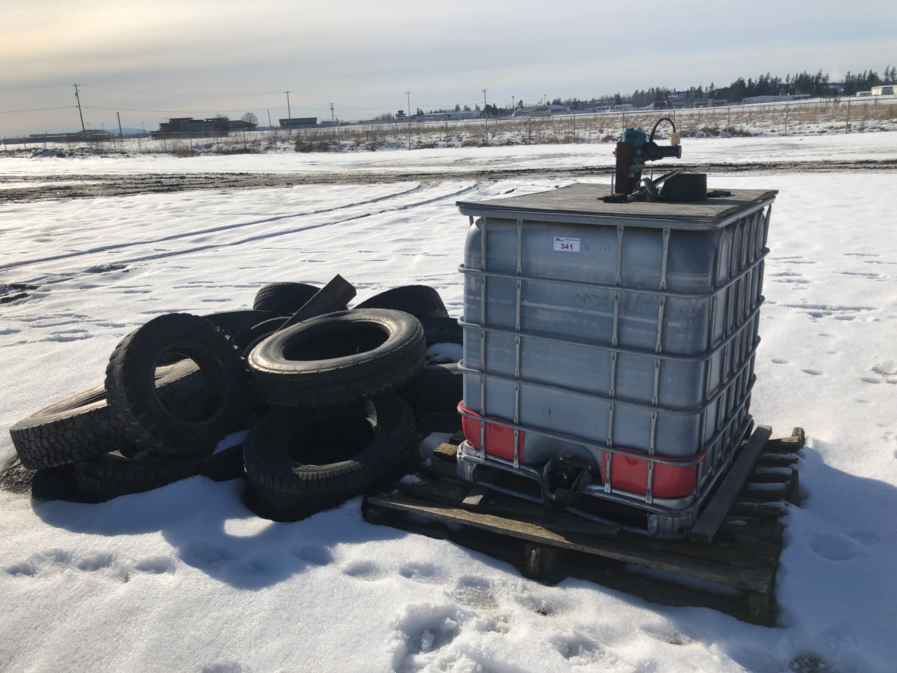 LARGE CAPACITY 1000L FLUID CONTAINER WITH BUILT-IN DRILL MIXER & ASSORTED TIRES