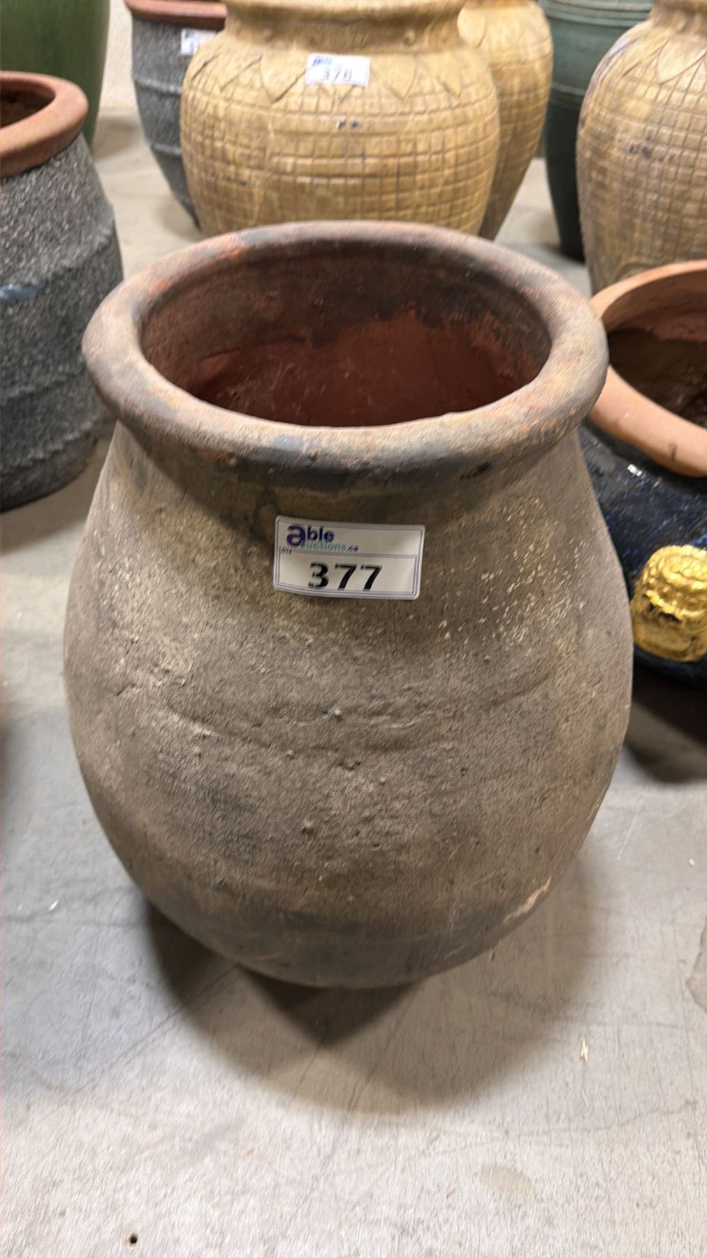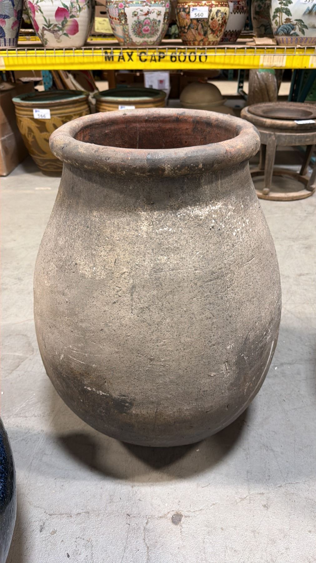 LARGE CERAMIC STONE LOOK TAPERED PLANTER POT APPROX 1.6'W X 2.5'H