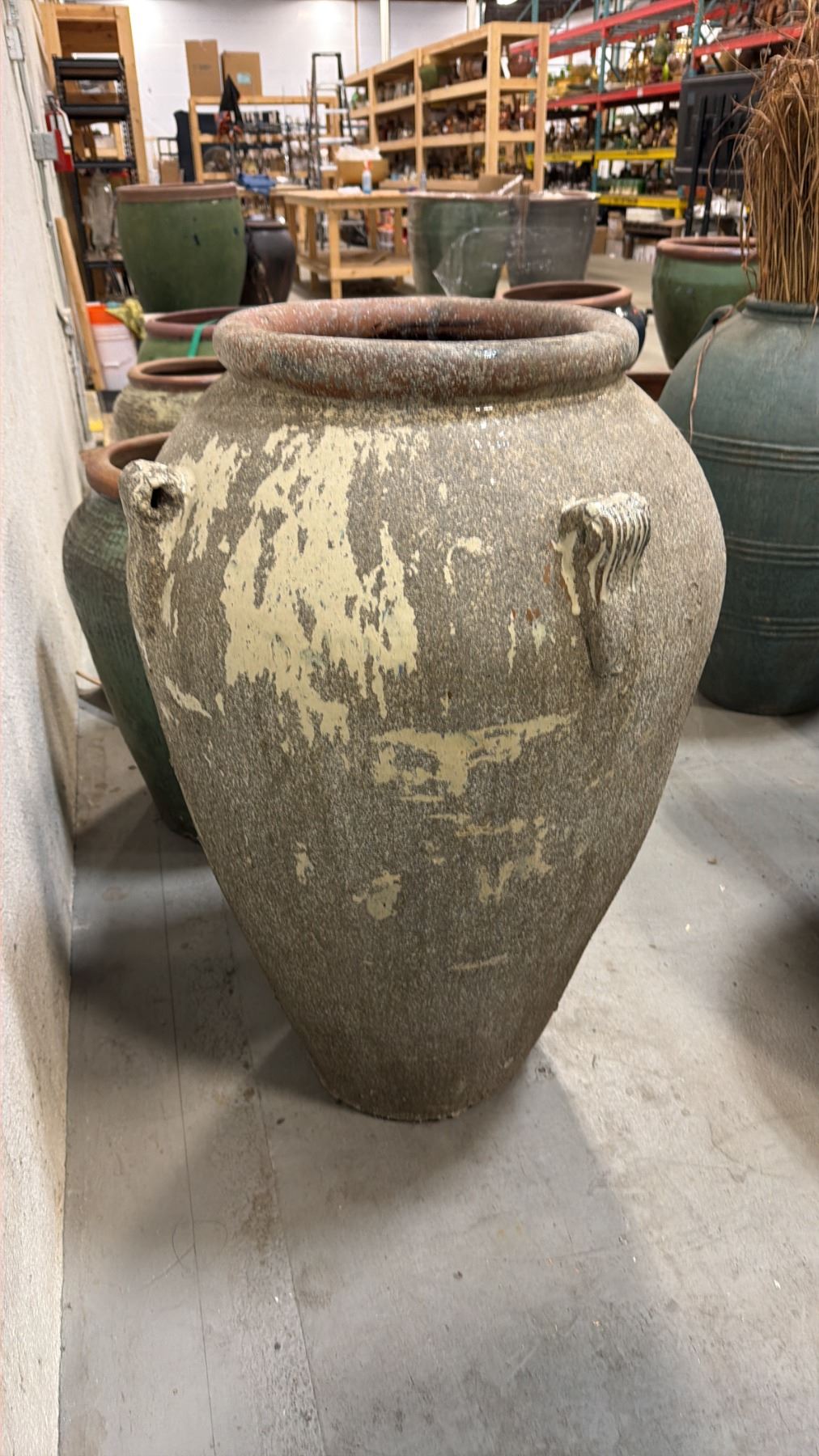 LARGE CERAMIC TAPERED PLANTER POT APPROX 2' W X 3.5'H