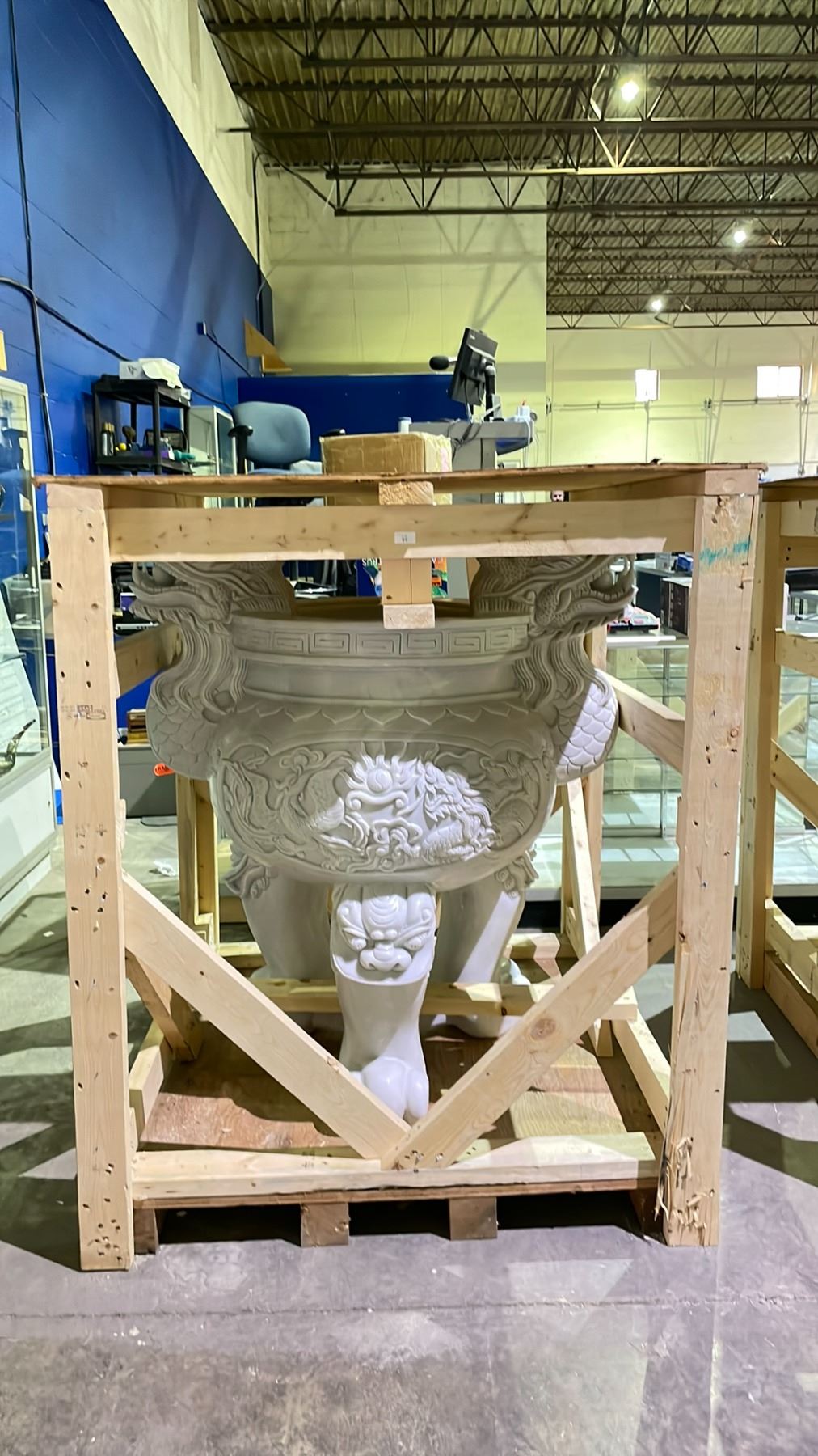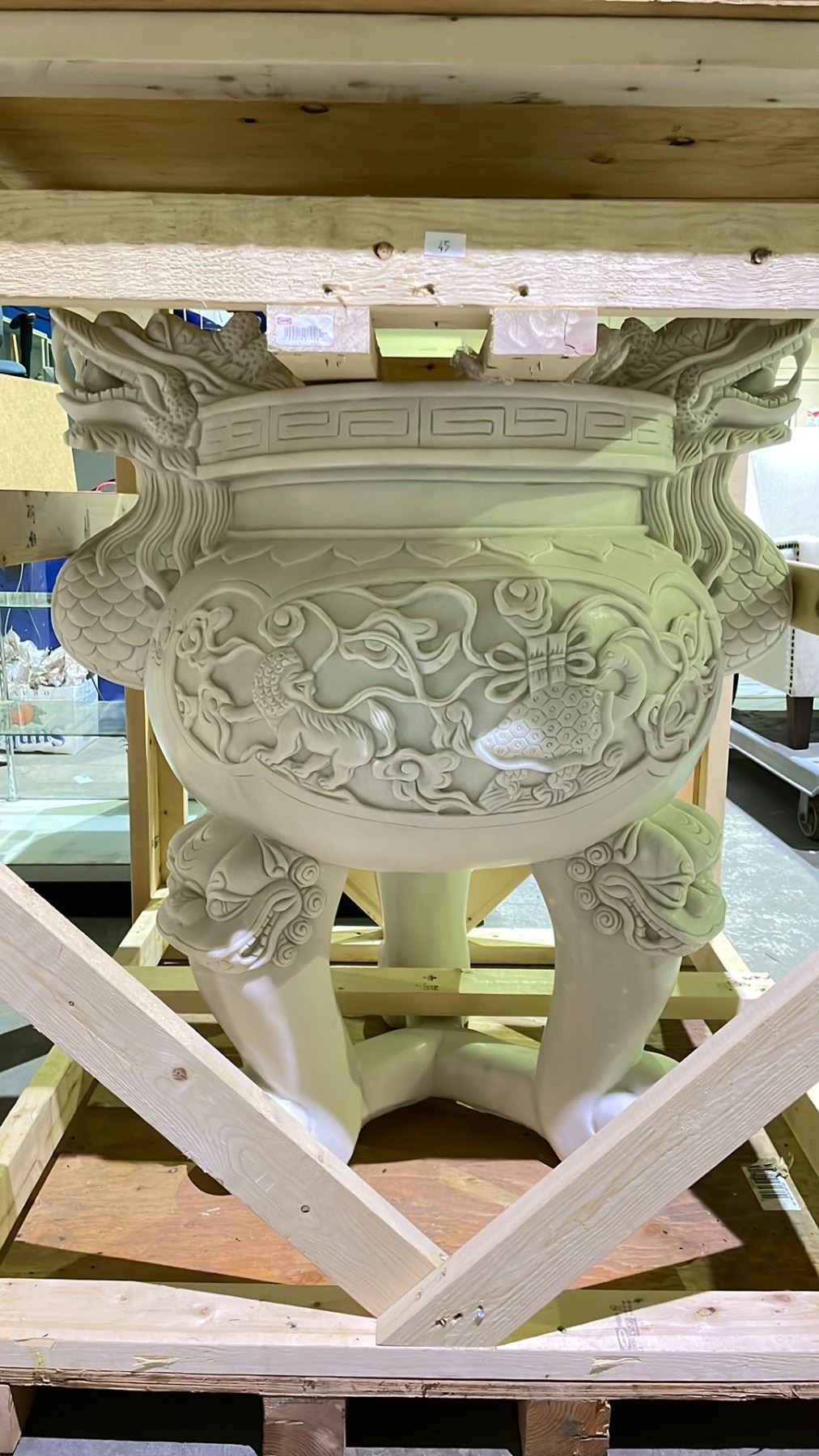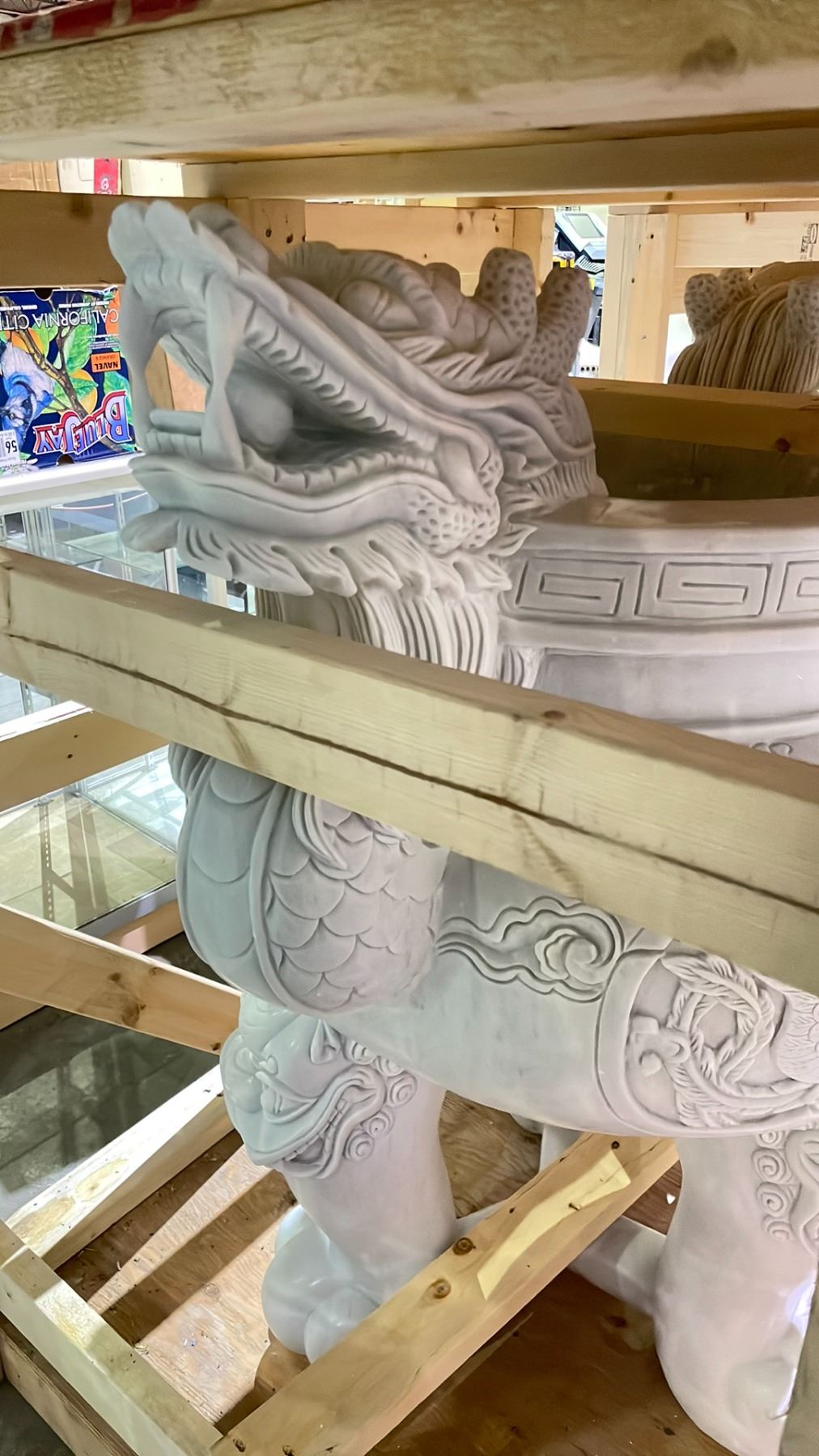 LARGE CHINESE DRAGON MOTIF HEAVILY HAND CARVED CLAW FOOT MARBLE PLANTER STAND 48"H X 46"L X 32"W
