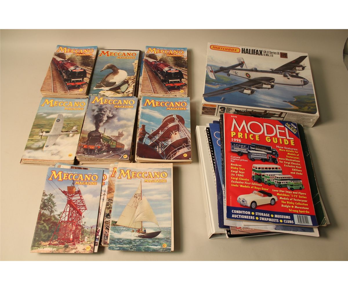 LARGE COLLECTION (APPROX 80) MECCANO MAGAZINES, MOSTLY FROM 1940'S-50'S AND MATCHBOX HALIFAX MODEL NEW IN BOX
