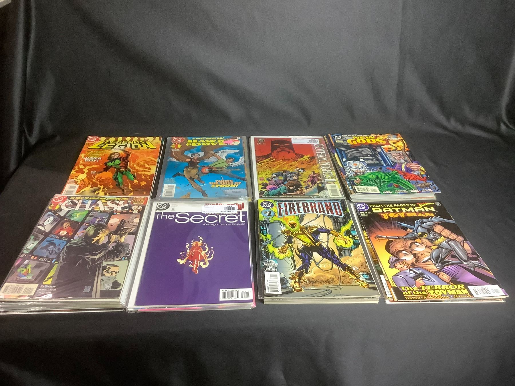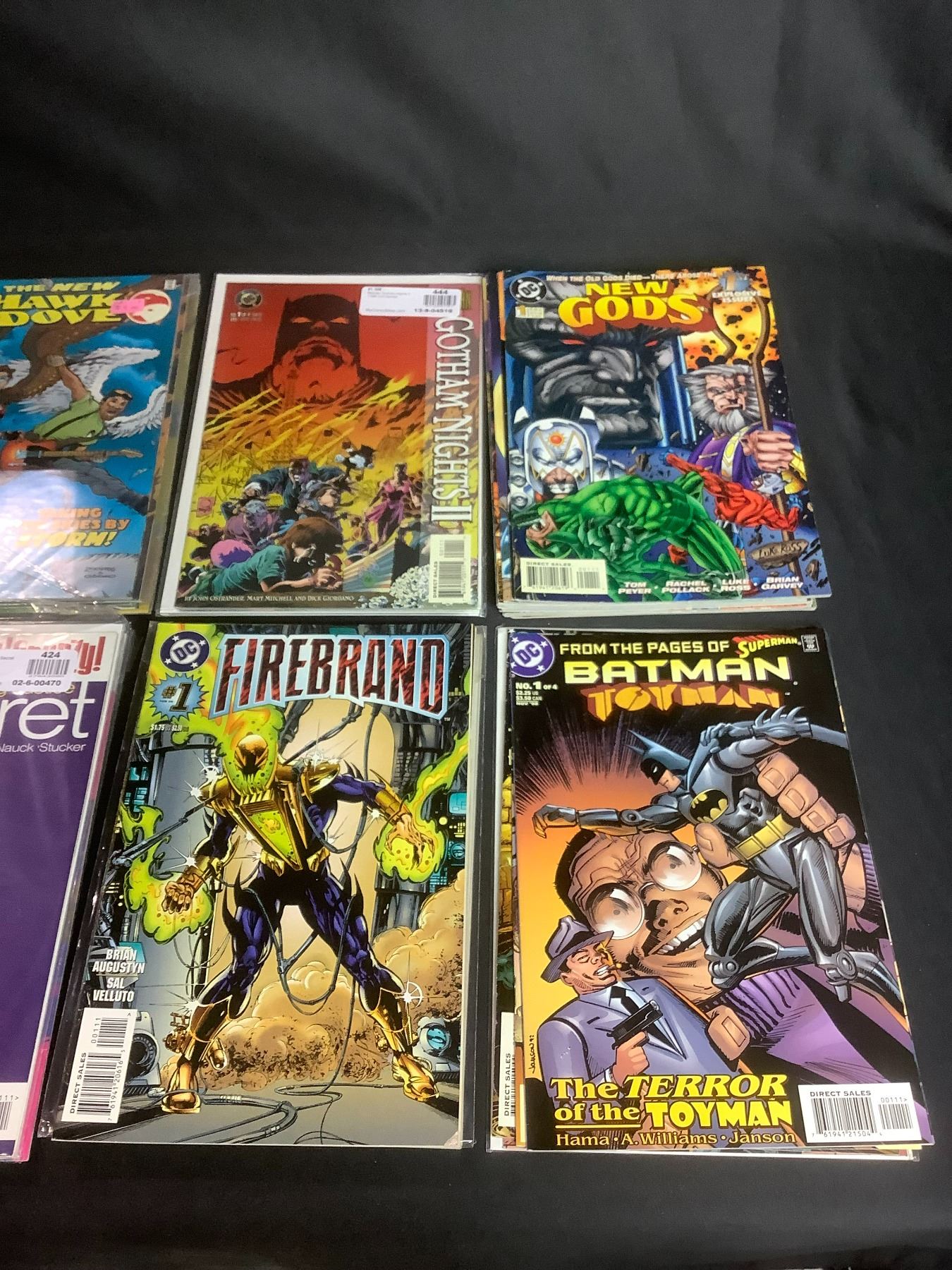 LARGE COLLECTION OF COMIC BOOKS TITLES INCLUDE: BATMAN TOYMAN, FIREBRAND, GIRL FRENZY, CHASE, NEW GODS, GOTHAM NIGHTS 2, THE NEW HAWK & DOVE, & MORE