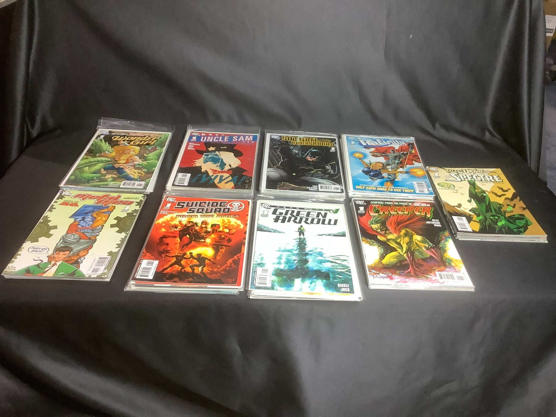 LARGE COLLECTION OF COMIC BOOKS TITLES INCLUDE: THE SPECTRE, THE CREEPER, GREEN ARROW, SUICIDE SQUAD, METAL MEN, INFINITY INC., GOTHAM UNDERGROUND, & MORE
