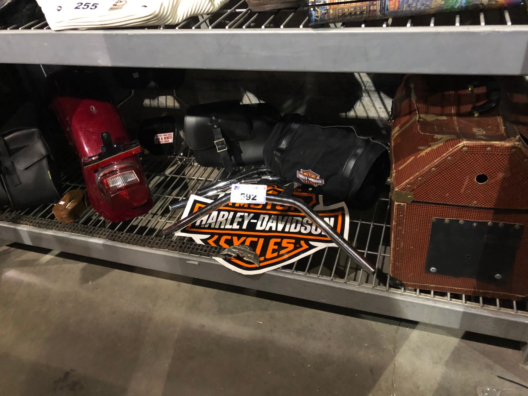 LARGE COLLECTION OF MOTORCYCLE RELATED ITEMS INCLUDING HARLEY DAVIDSON JACKET AND MORE
