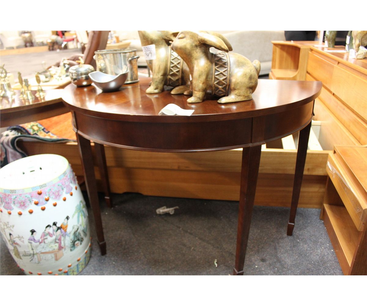 LARGE DARK WOOD SEMI CIRCLE HALL TABLE