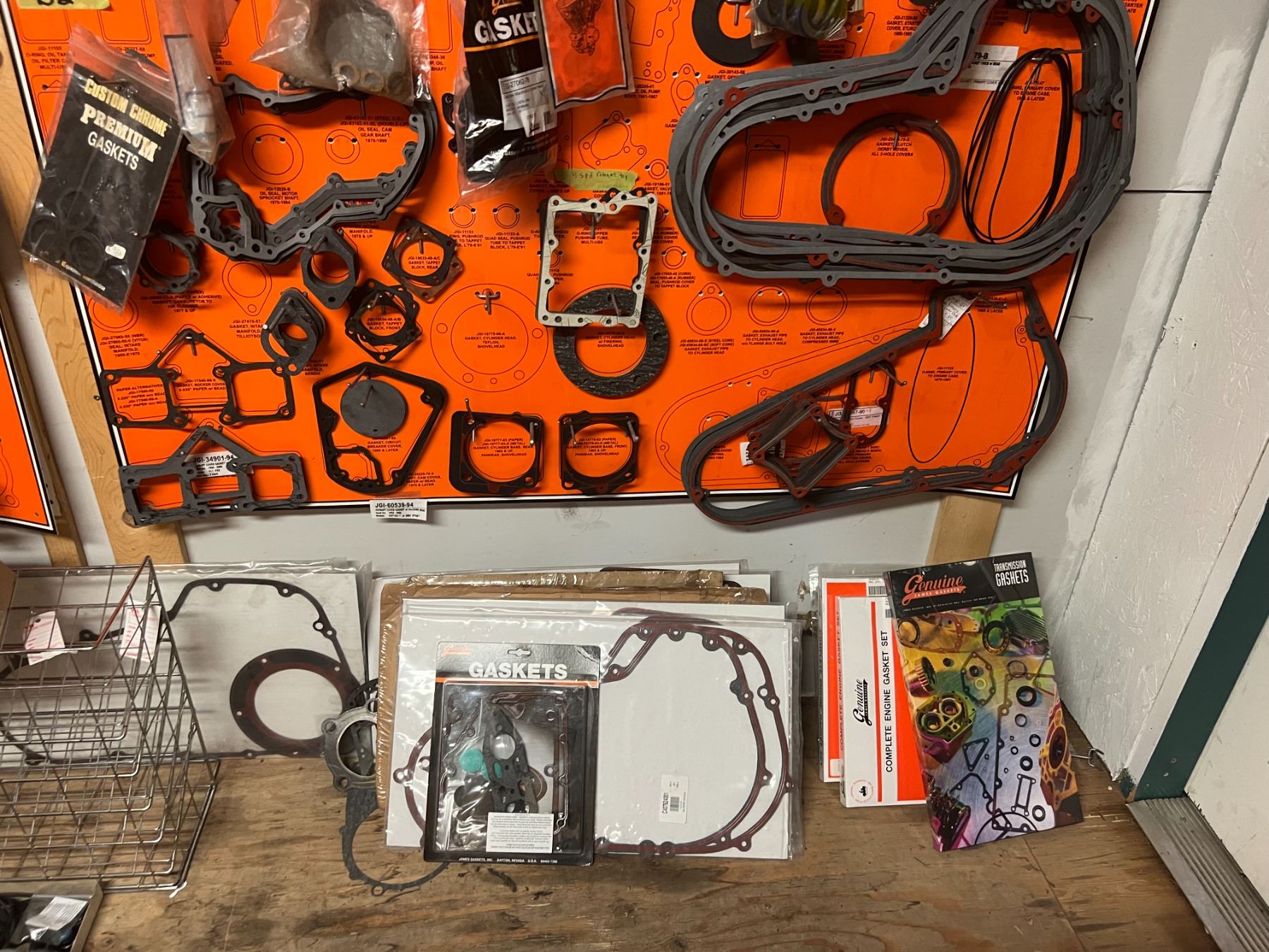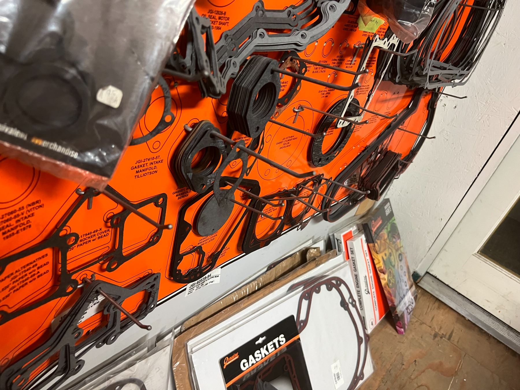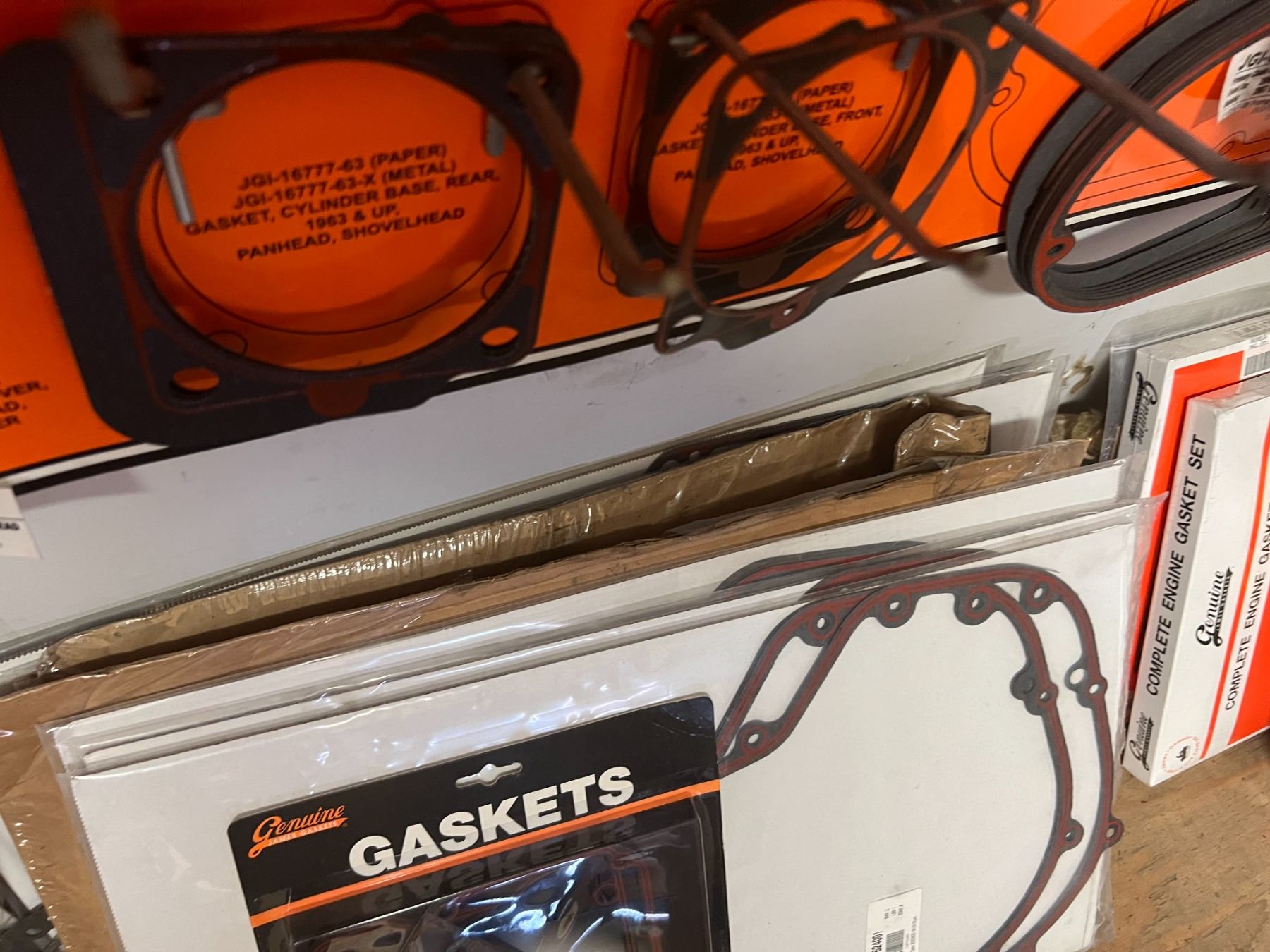 LARGE DEALER DISPLAY OF HARLEY-DAVIDSON GASKETS & O'RINGS (HUNDREDS OF PIECES)