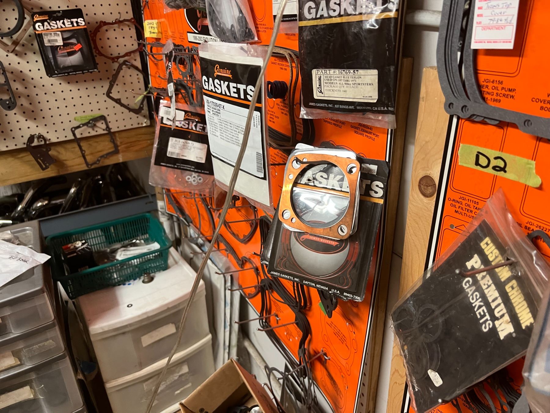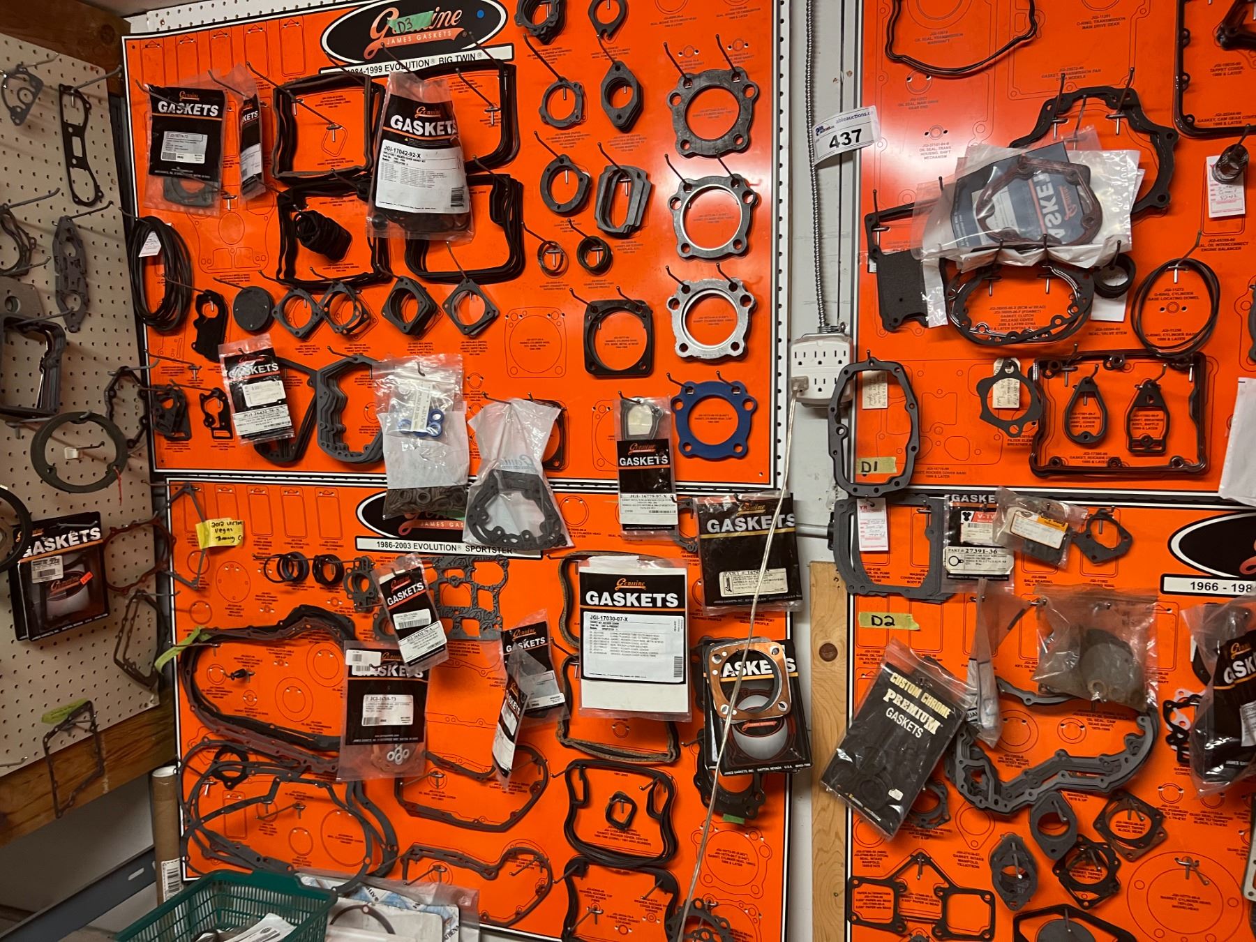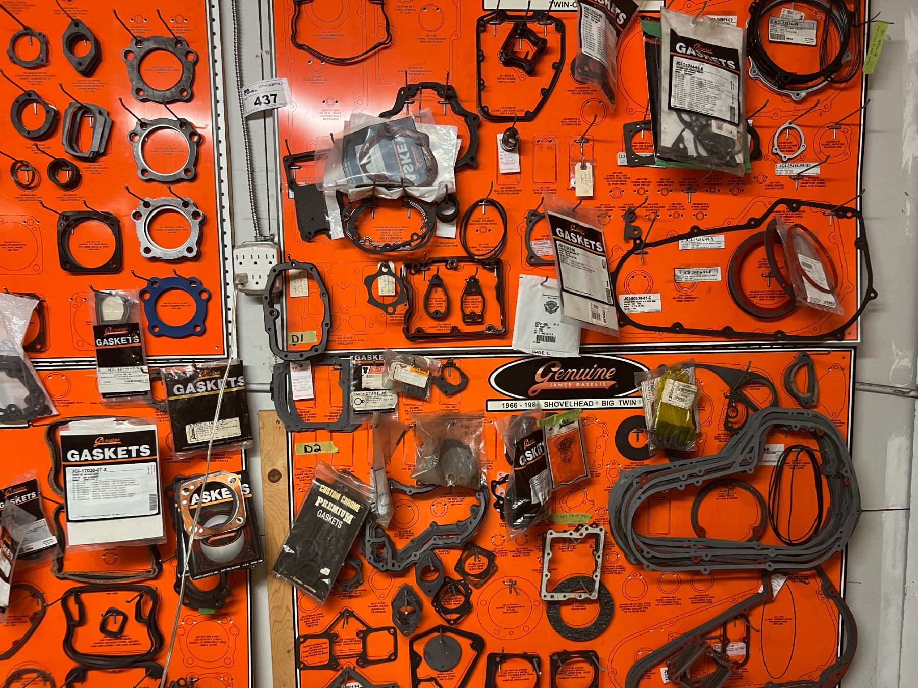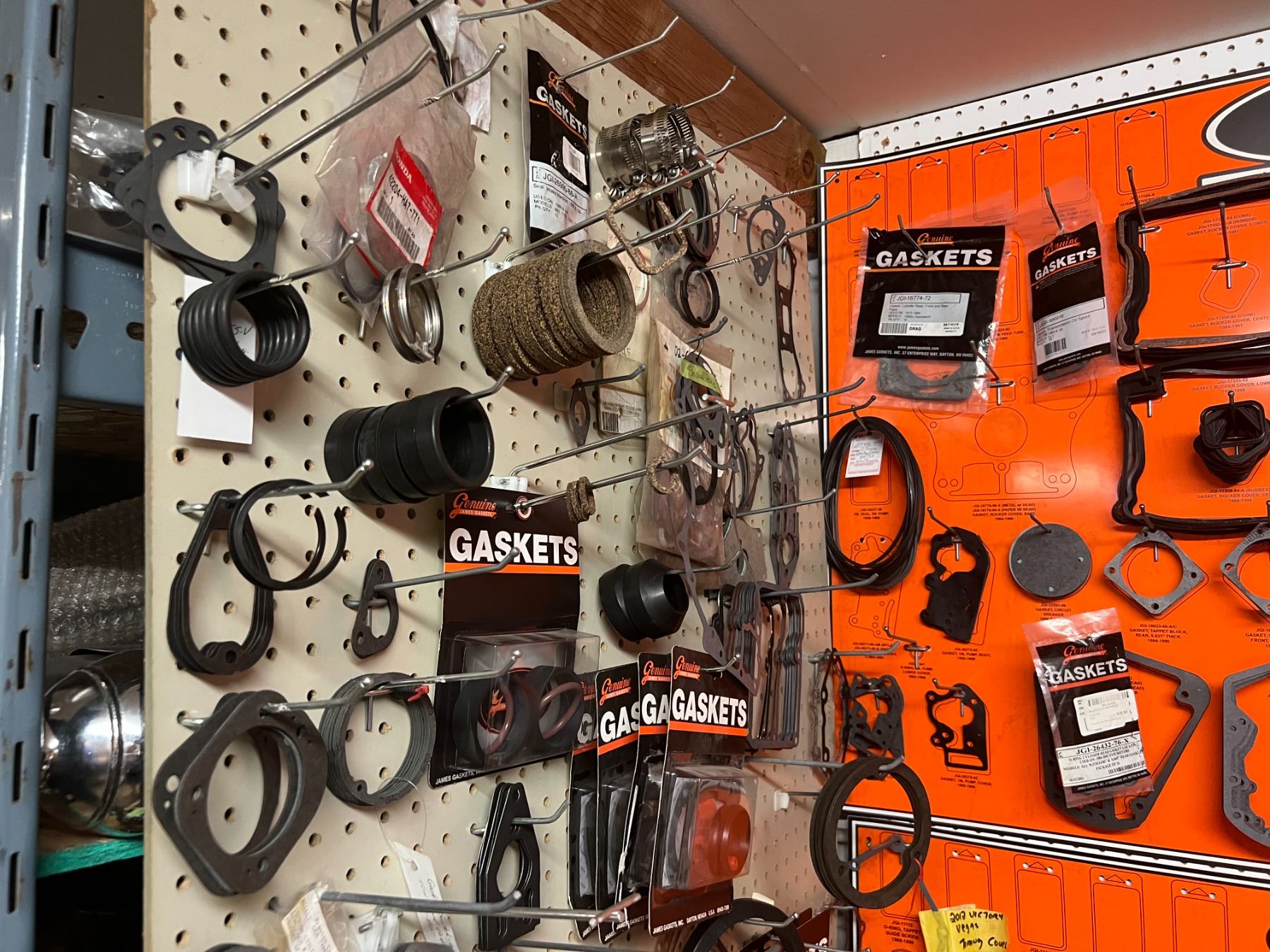 LARGE DEALER DISPLAY OF HARLEY-DAVIDSON GASKETS & O'RINGS (HUNDREDS OF PIECES)