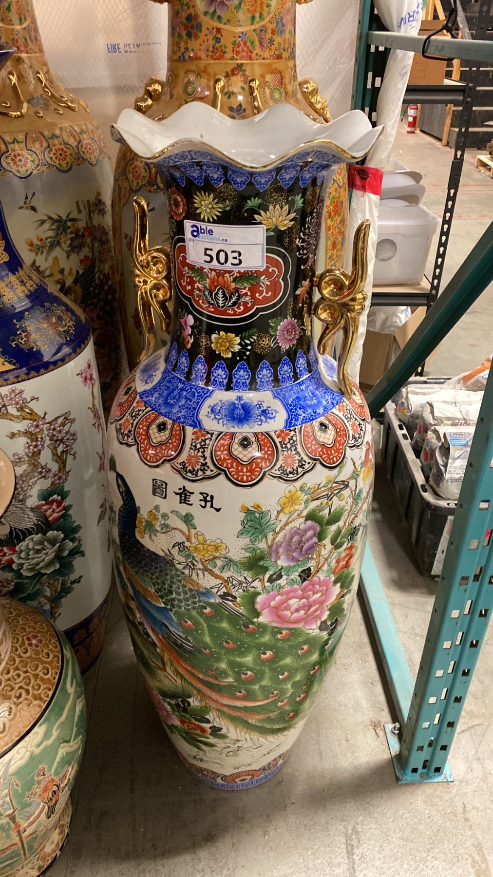 LARGE DECORATIVE ASIAN FLOOR VASE APPROX 47" TALL