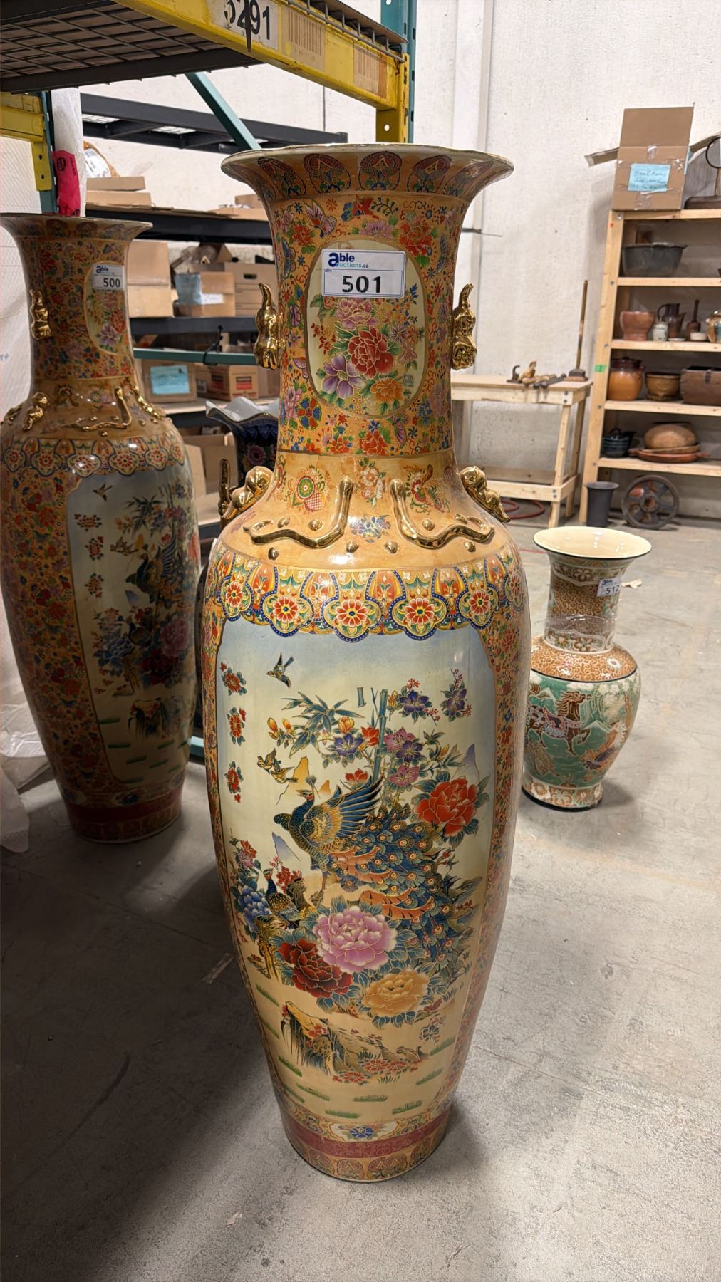 LARGE DECORATIVE ASIAN FLOOR VASE APPROX 62  TALL