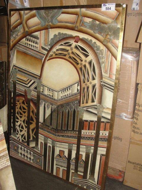 LARGE DECORATIVE PAINTED WALL PANEL - ROMAN STYLE COLUMNS AND ARCHES