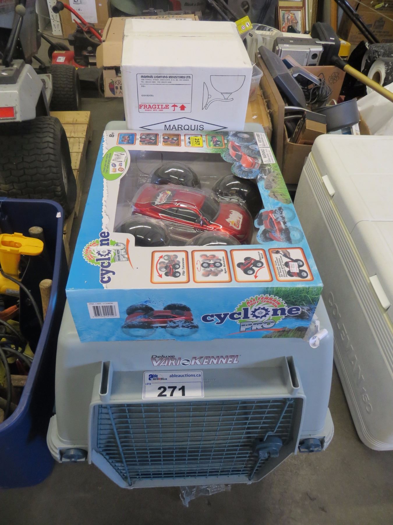LARGE DELUXE VARI KENNEL/CYCLONE PRO REMOTE CAR/NEW LIGHT FIXTURE