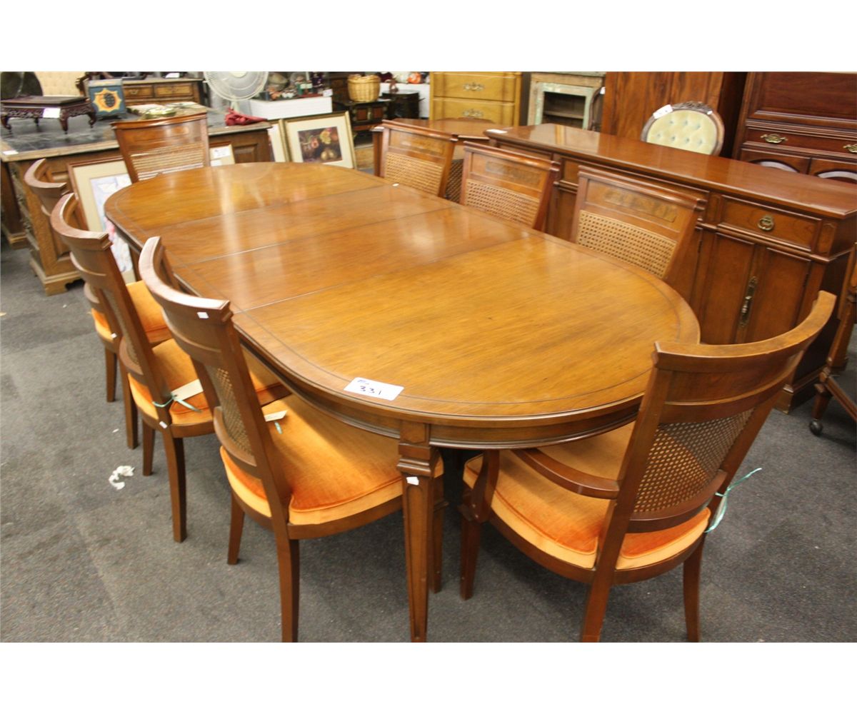 LARGE DINING SET WITH 6 SIDE CHAIRS & 2 ARM CHAIRS C/W 2 LEAFS