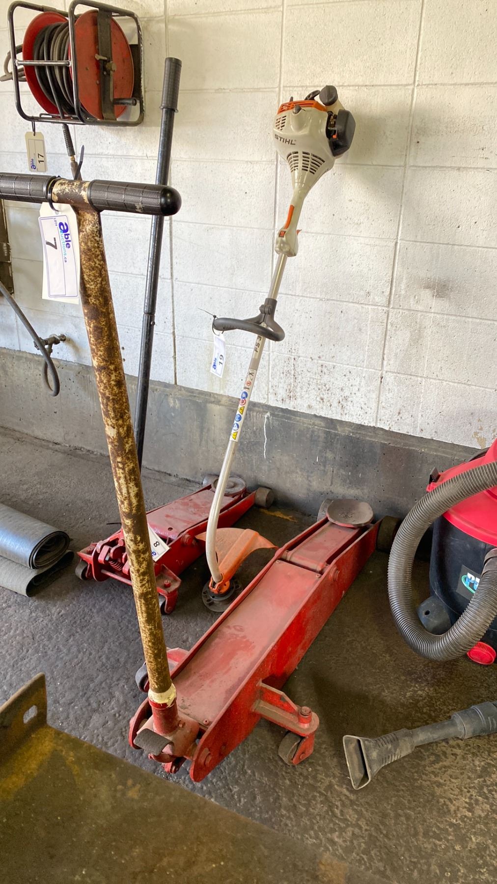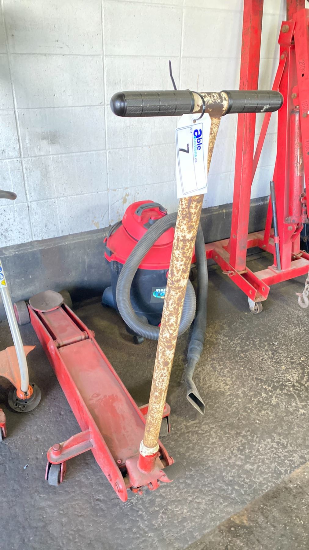 LARGE FLOOR JACK. 4' LONG WITH FOOT PEDAL RELEASE