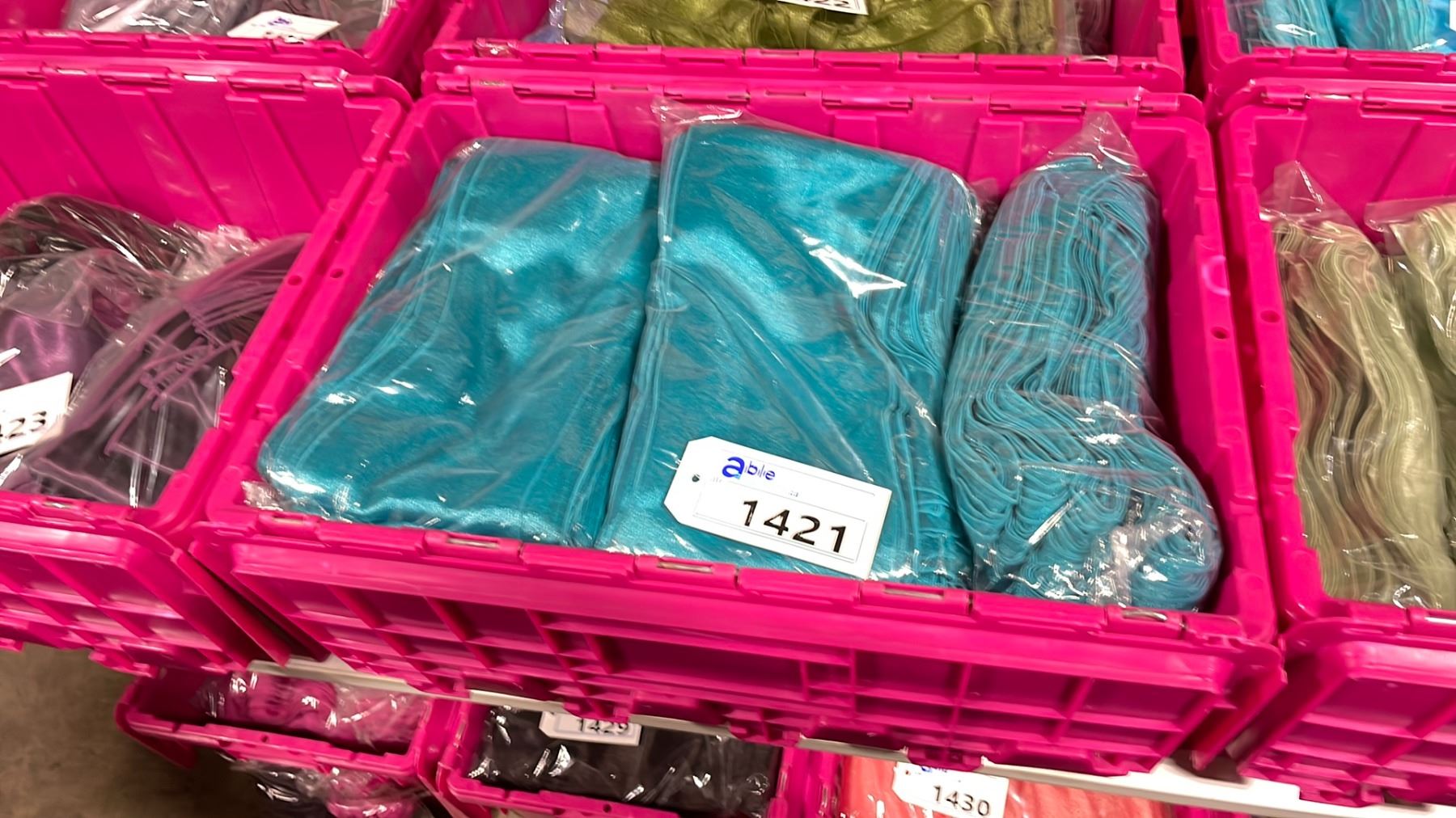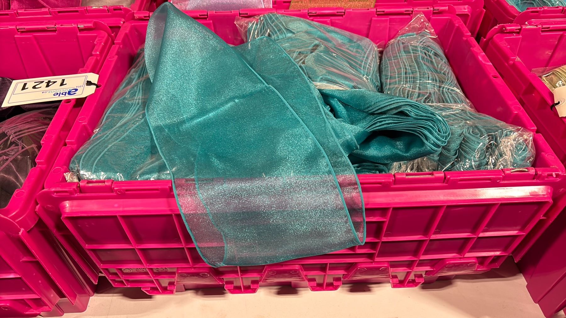 LARGE FOLD TOP BIN OF EVENT/ BANQUET CHAIR ORGANZA FABRIC ( TEAL ) *BIN INCLUDED*