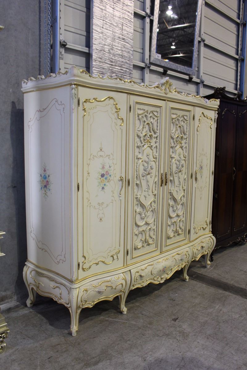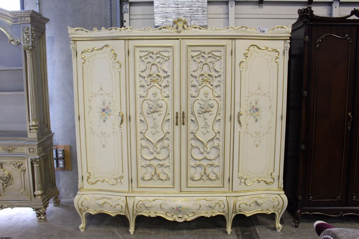 LARGE FRENCH STYLE TOLL PAINTED WARDROBE AND CABINET