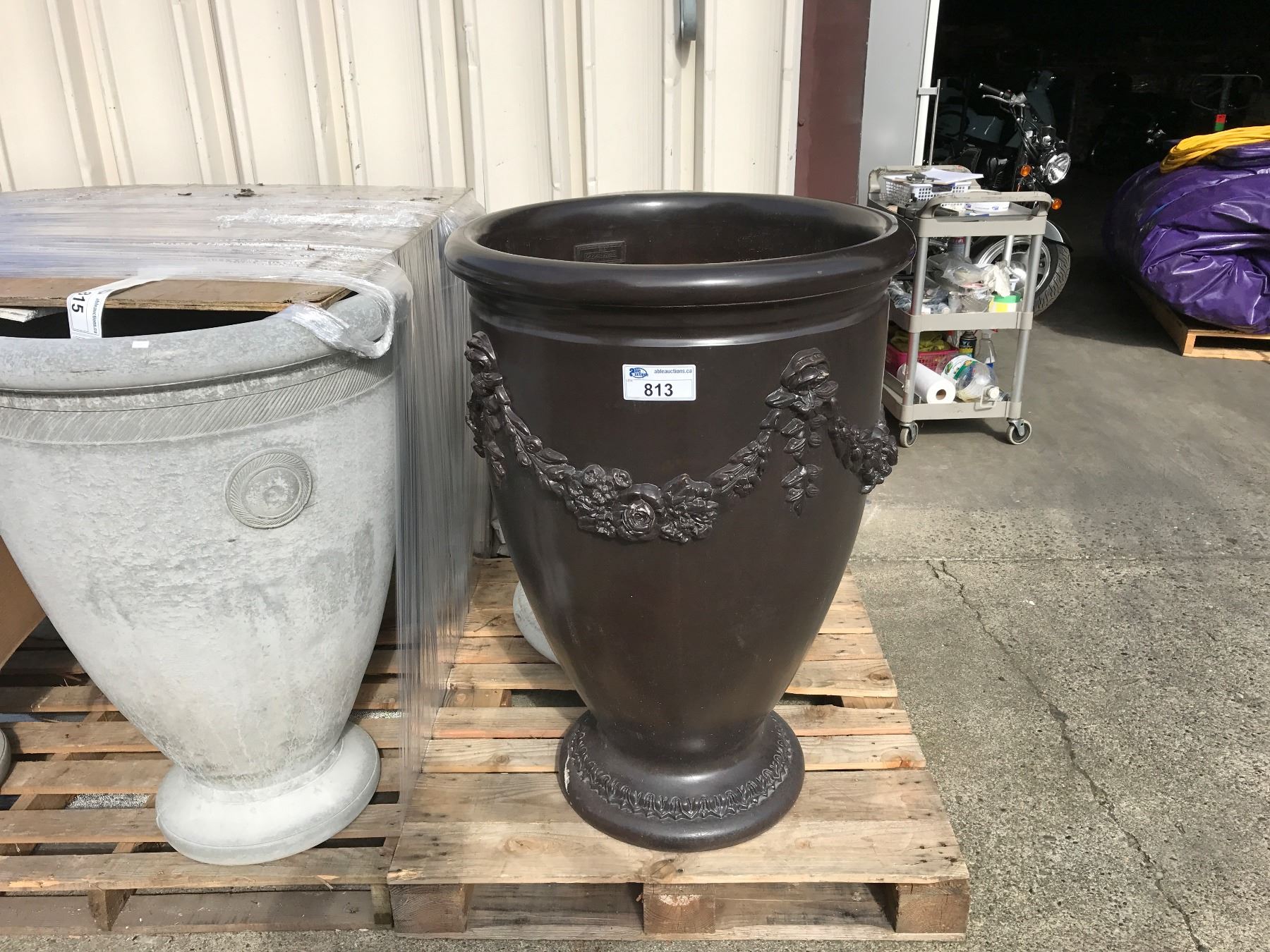 LARGE GARDEN STONE FLUTED CEMENT PLANTER
