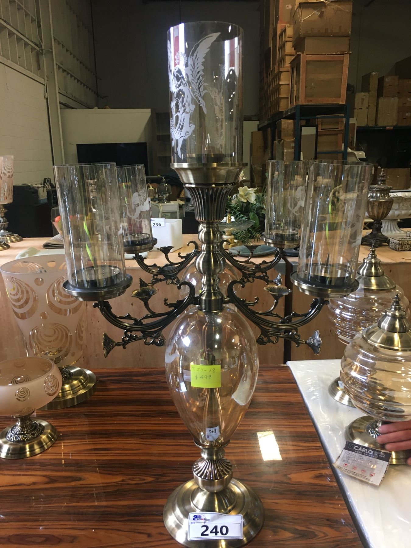 LARGE GLASS & BRASS FINISH CANDELABRA
