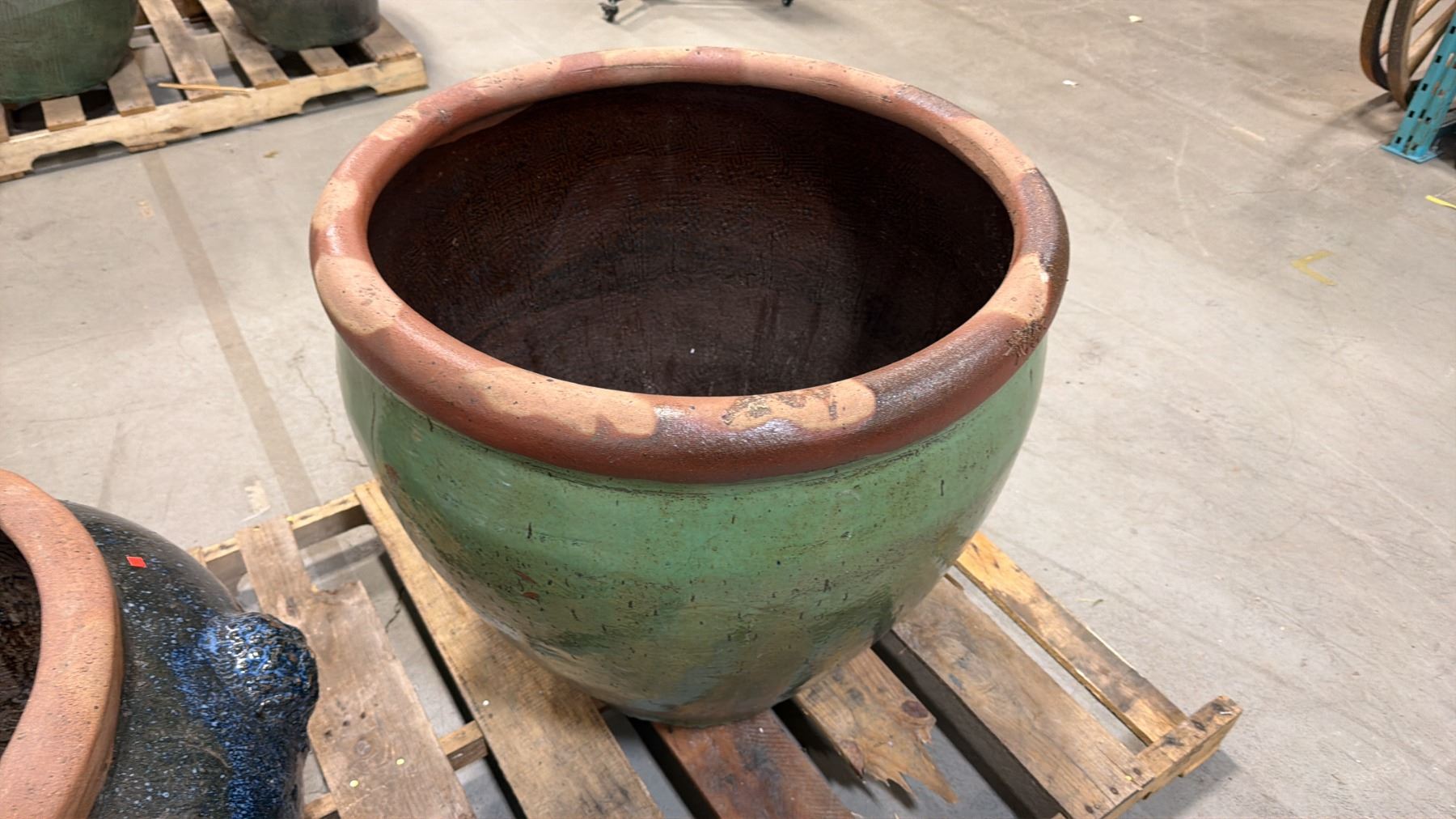 LARGE GREEN PLANTER POT APPROX 2.3'W X 2.2'H