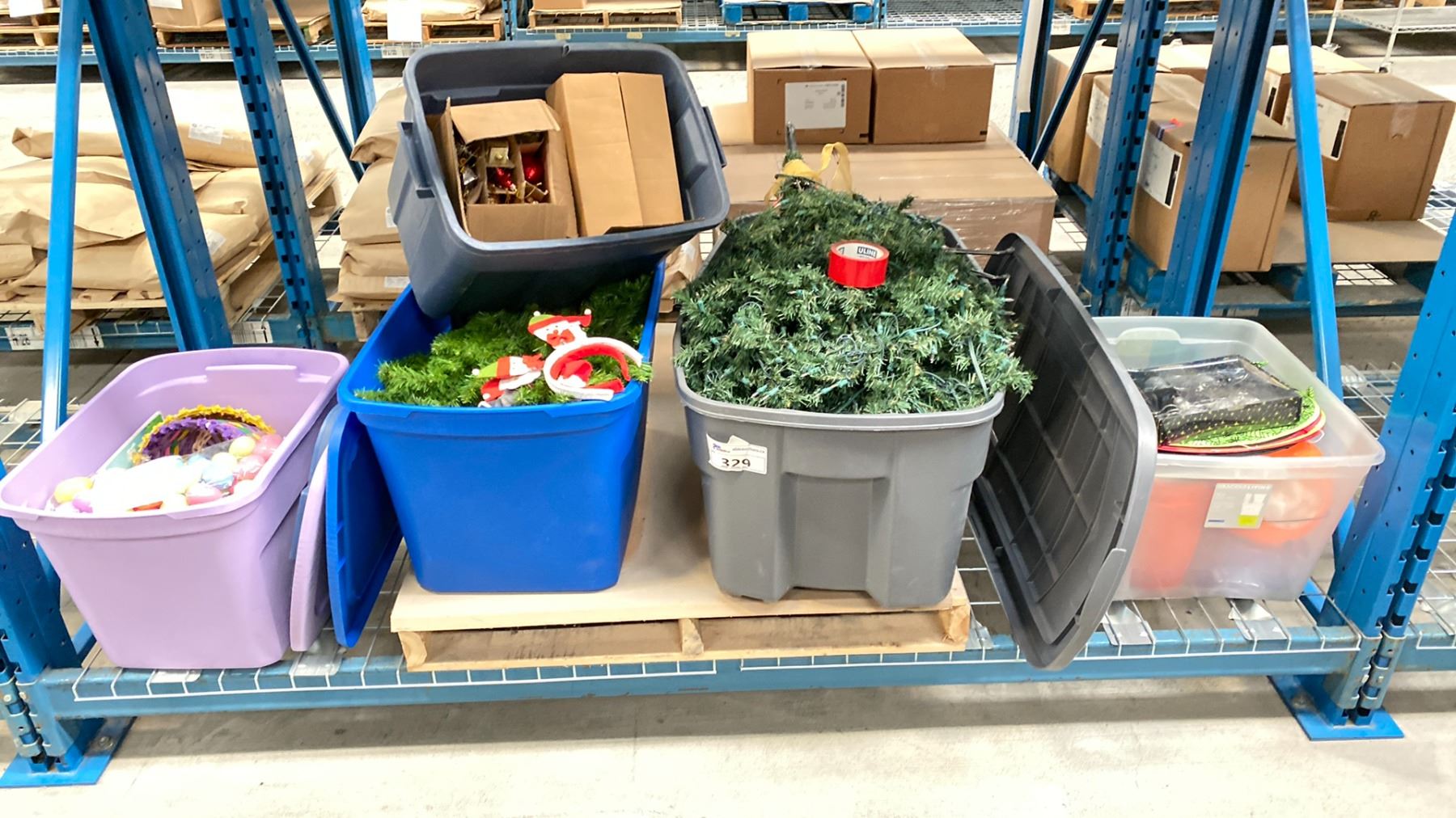 LARGE GROUP LOT OF HOLIDAY DECORATIONS, TREE, BULBS, ORNAMENTS, BUCKETS, ETC