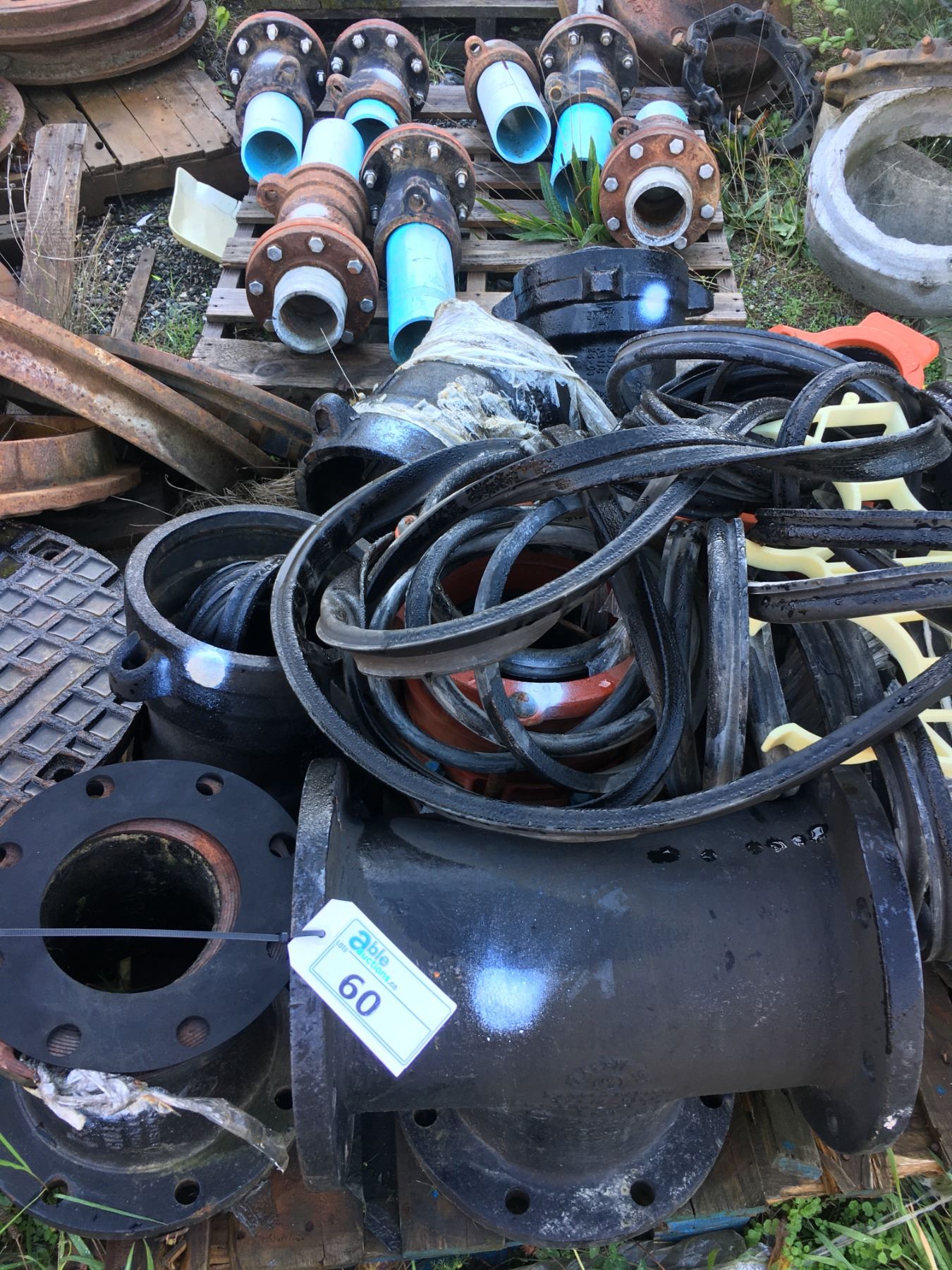 ** LARGE GROUP OF ASSORTED CAST IRON FITTINGS & WATER VALVES ** *REQUIRES PROPER TRUCKS, DOLLIES, PALLET JACK, HELP & EQUIPMENT FOR REMOVAL*