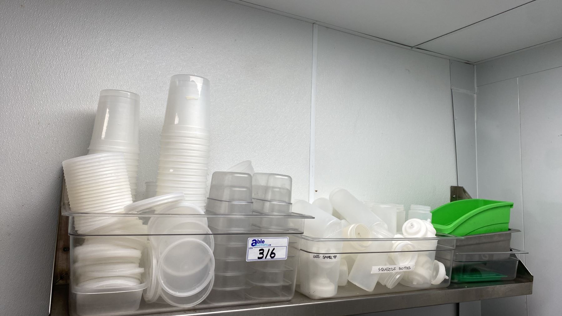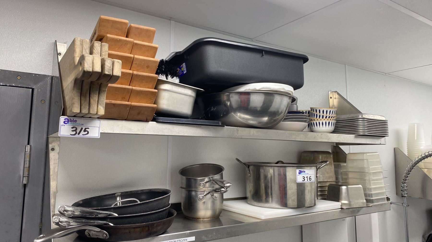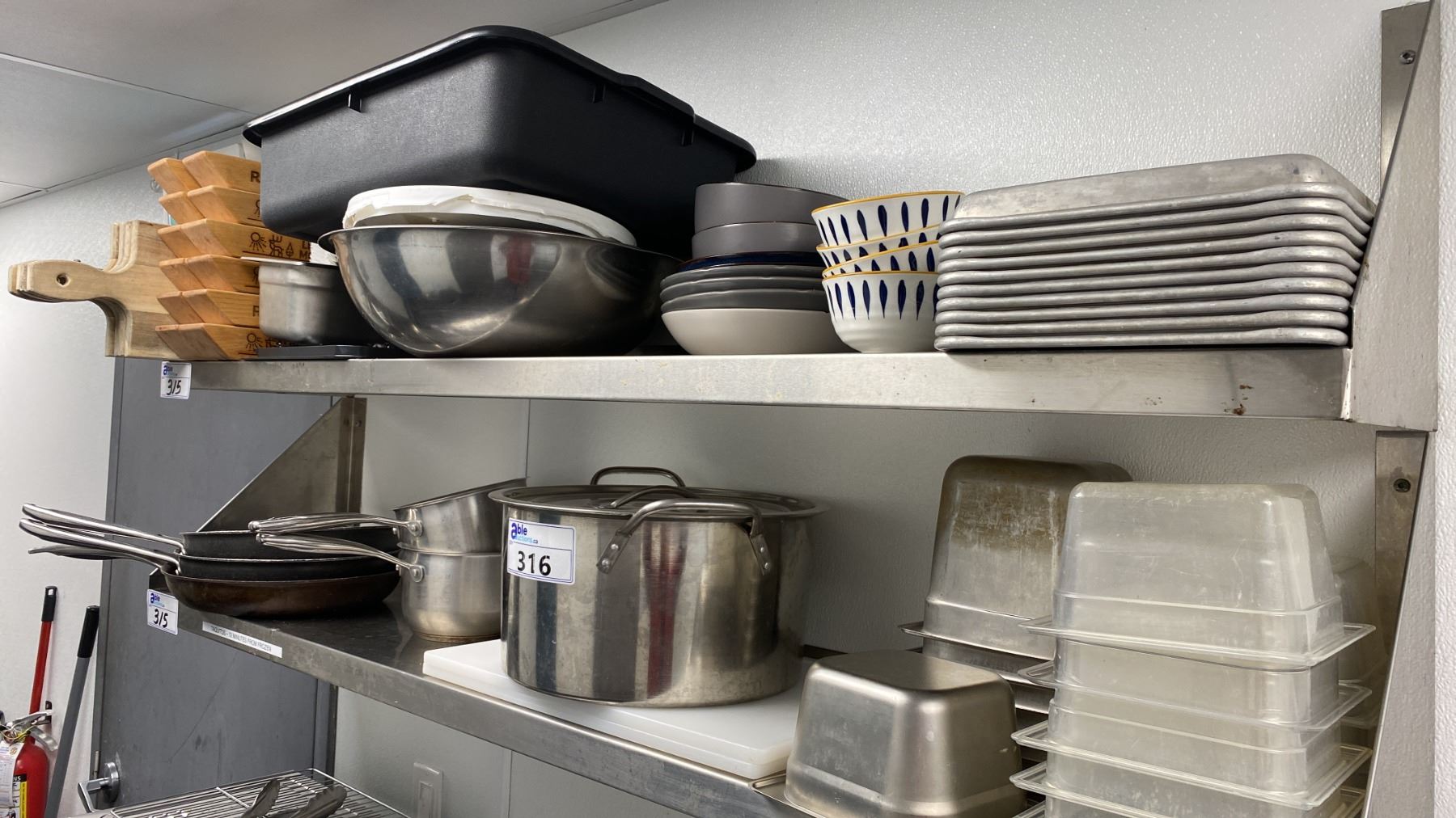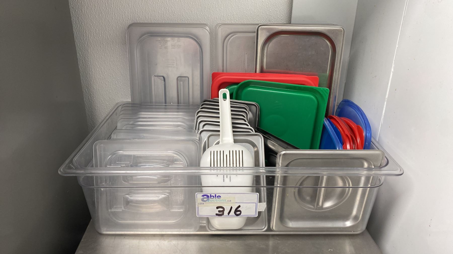 LARGE GROUP OF ASSORTED METAL & PLASTIC INSERTS, ASSORTED COOKWARE, CONTAINERS AND