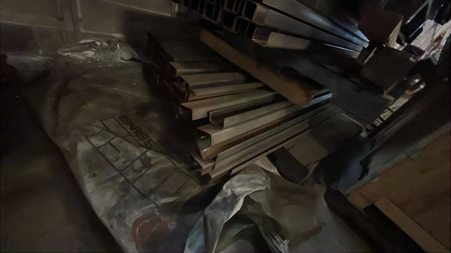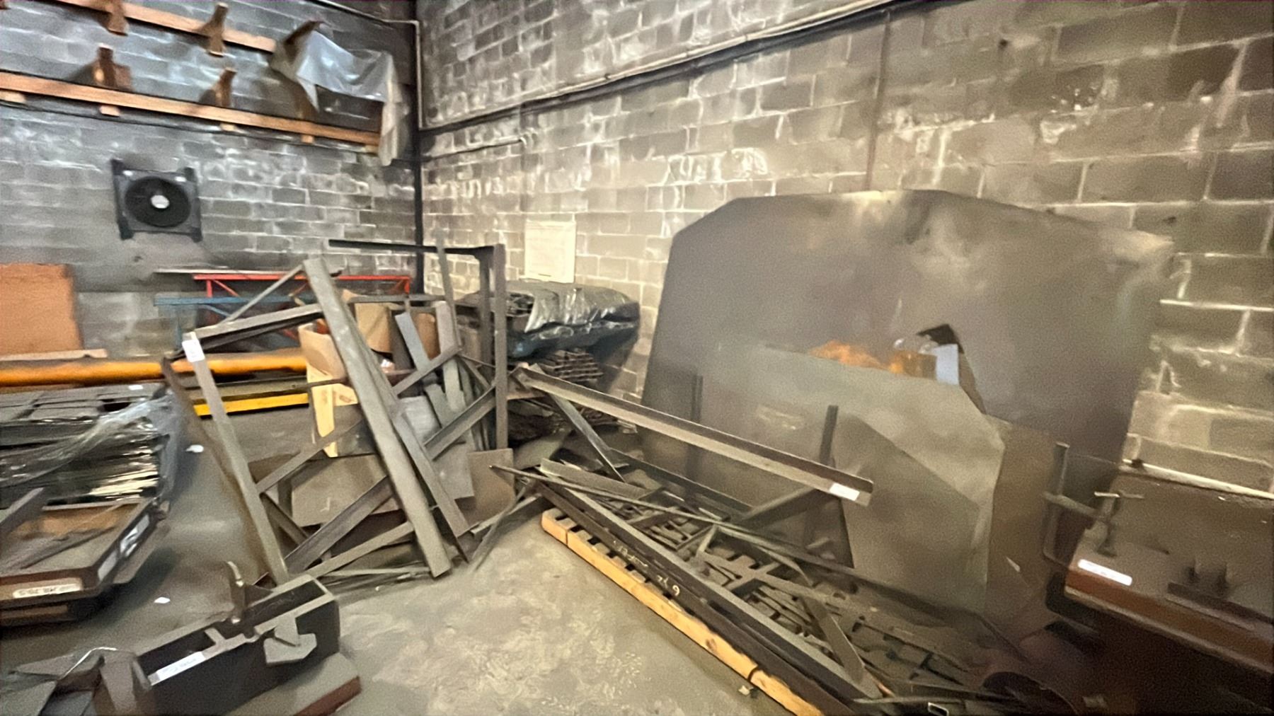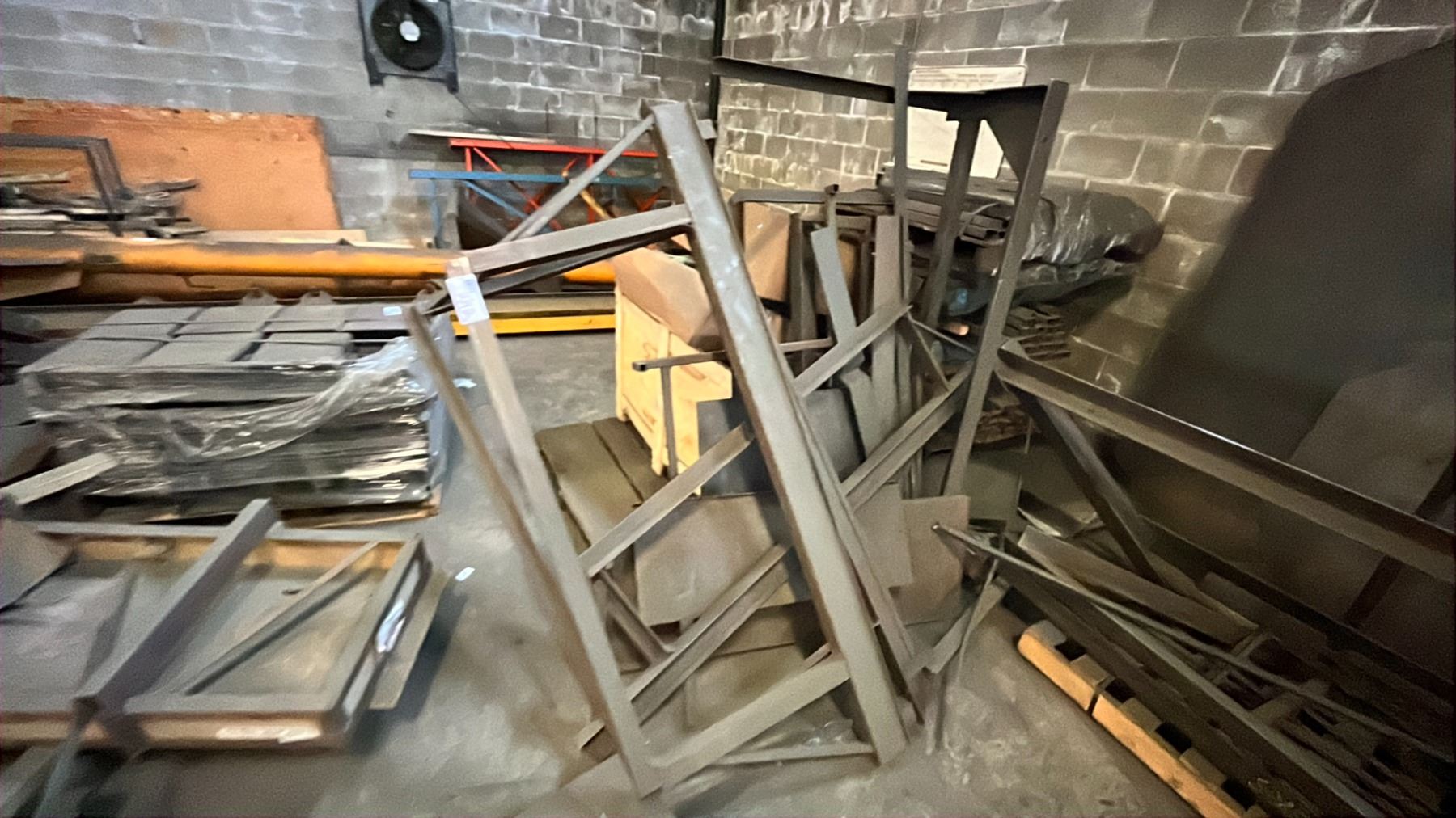 LARGE GROUP OF METAL MATERIAL PARTS AND SOME SCRAP ASSORTED SIZES LENGTHS AND DIMENSIONS 3 PALLETS OF GOOD VARIOUS SIZE MATERIAL TUBING AND FLAT BAR, WOODEN CRATE OF SCRAP STEEL AND THREE BOX'S OF RUBBER FOAM INSULATION AND MISC CUTS OF METAL SHEETING