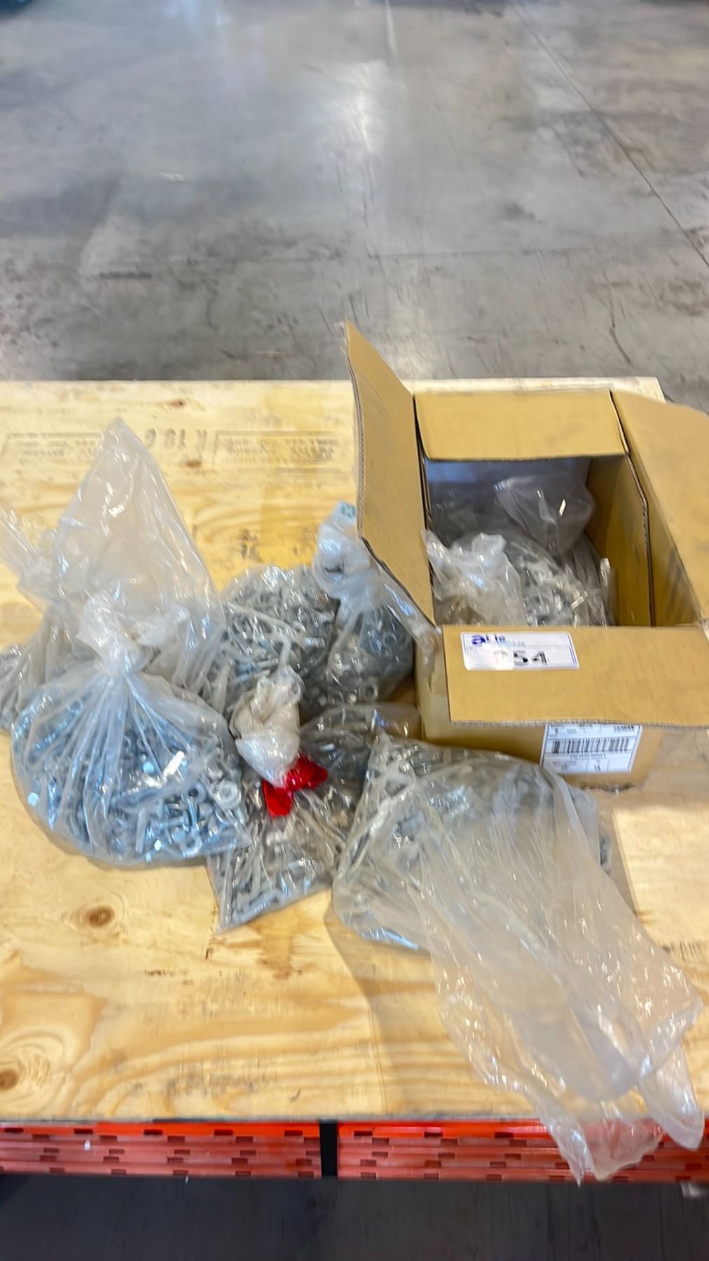 LARGE GROUP OF NUTS, BOLTS, WASHERS AND PALLET RACKING CLIPS