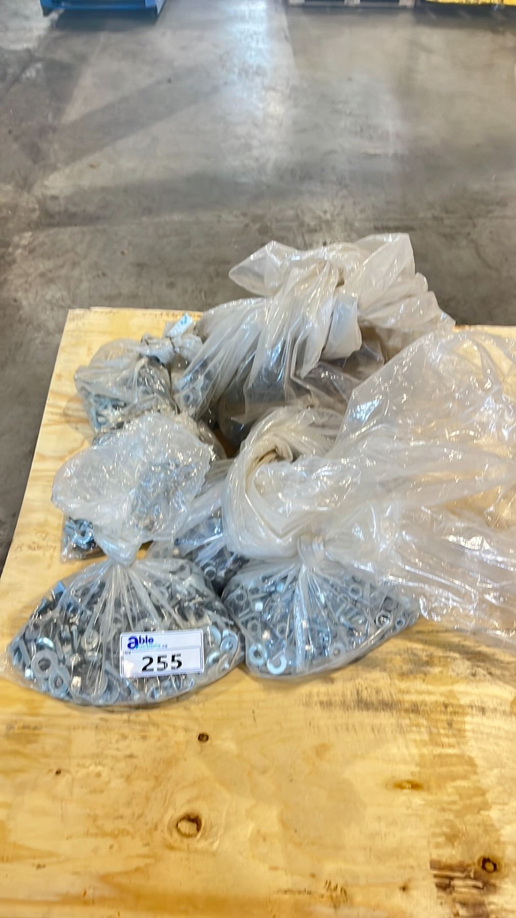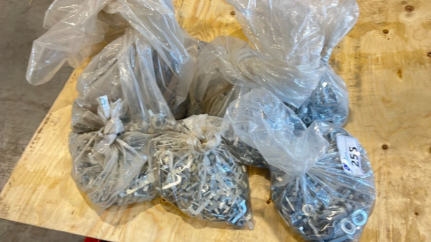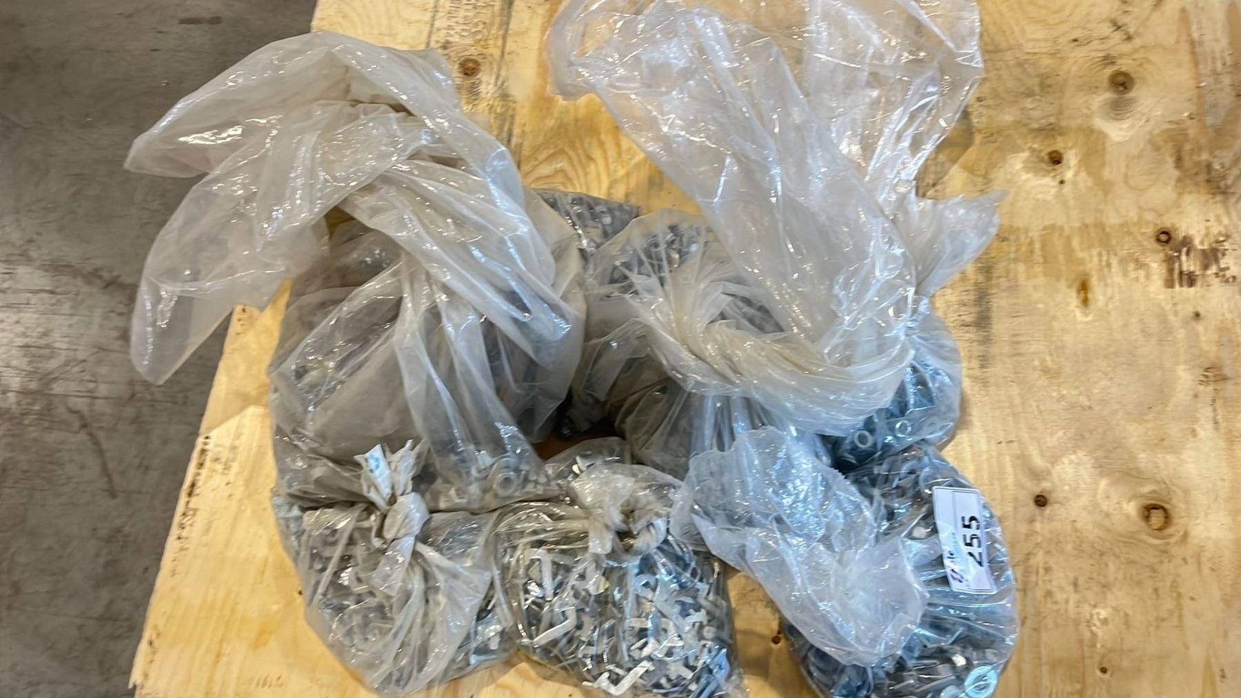 LARGE GROUP OF NUTS, BOLTS, WASHERS AND PALLET RACKING CLIPS