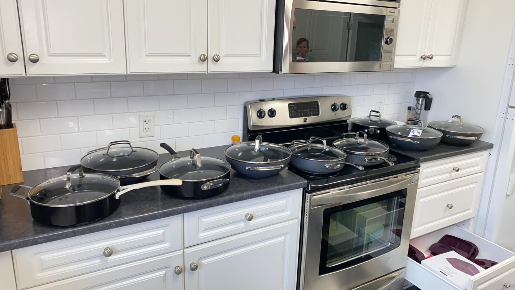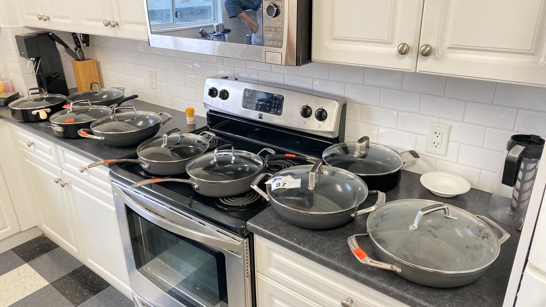 LARGE GROUP OF PANS WITH LIDS-NON-STICK. 9 POTS, 9 LIDS