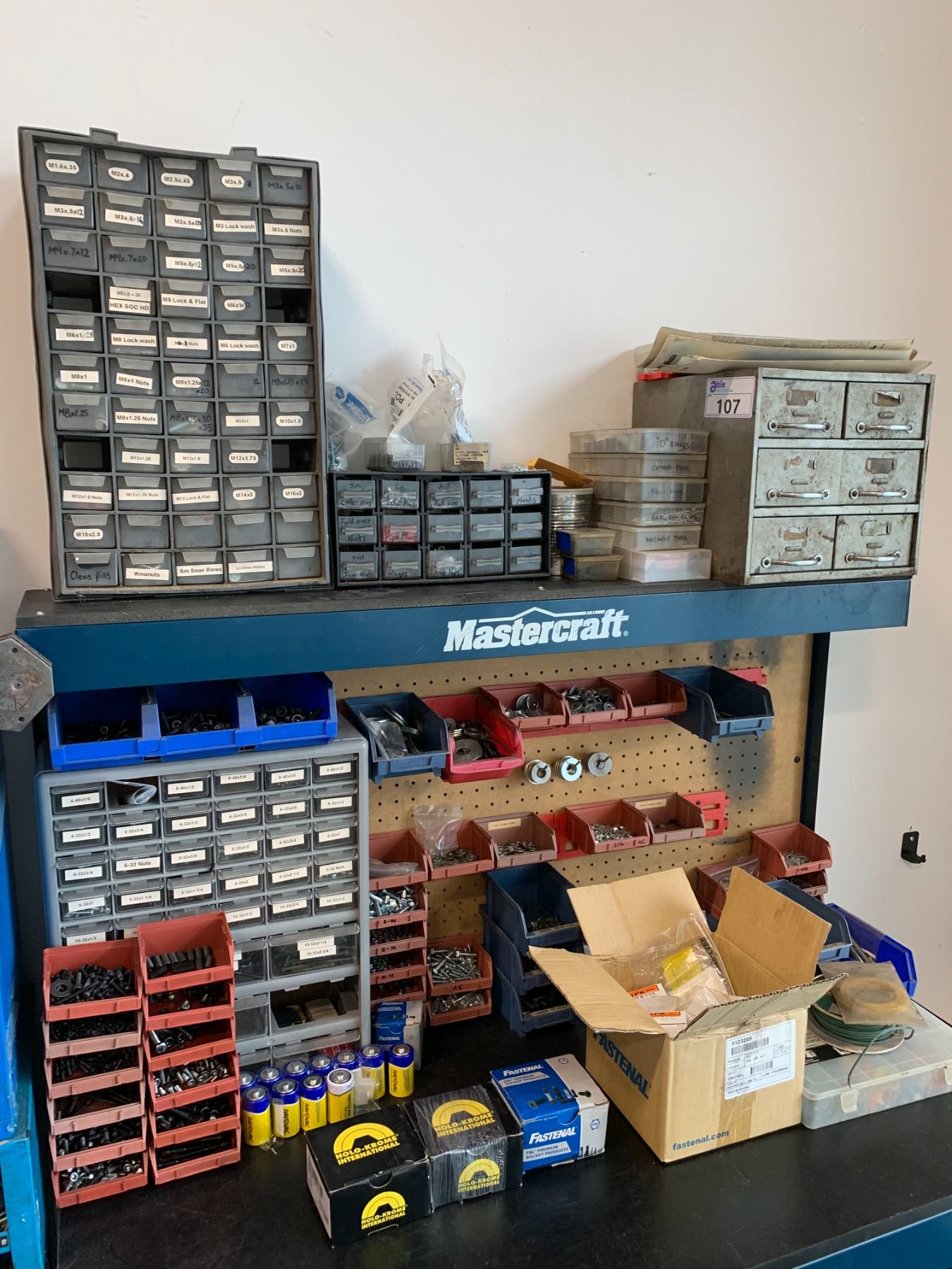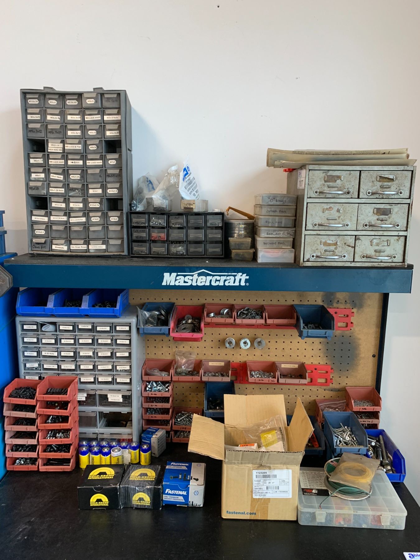 LARGE GROUP OF PARTS ORGANIZERS WITH LARGE QUANTITY ASSORTED FASTENERS, HARDWARE & MORE