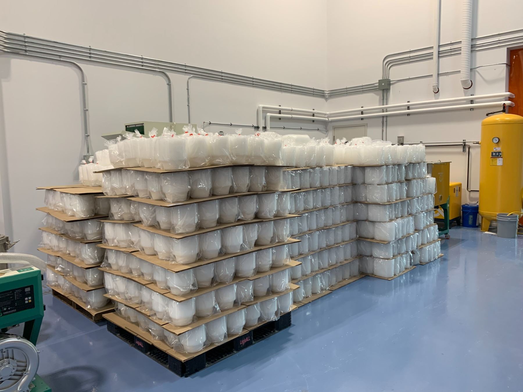 LARGE GROUP OF PLASTIC CONTAINERS - APPROX. 5 PALLETS SIZE STACKS 5FT HIGH