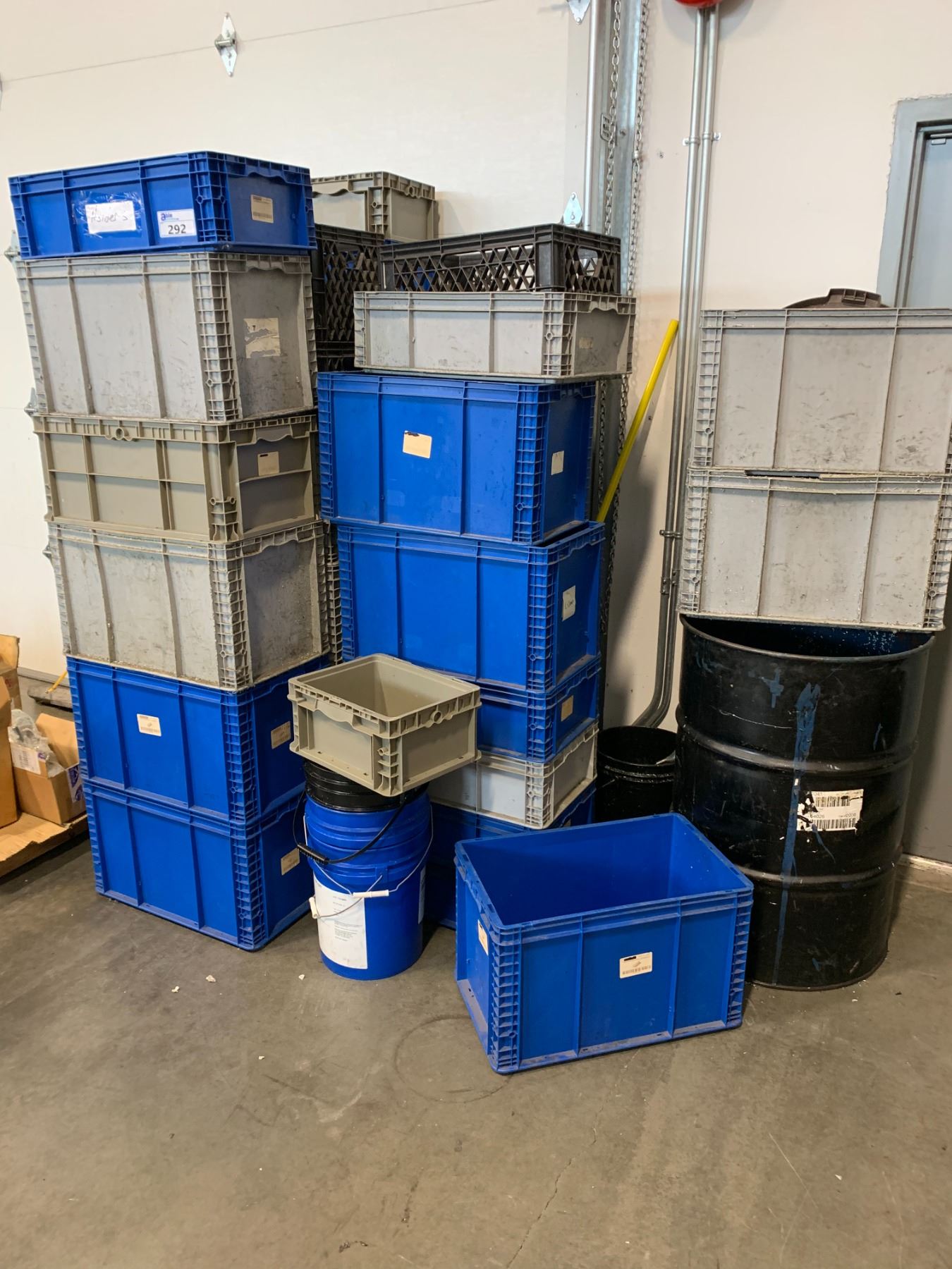 LARGE GROUP OF PLASTIC STORAGE BINS AND GARBAGE CANS - APPROX. 30 PCS.