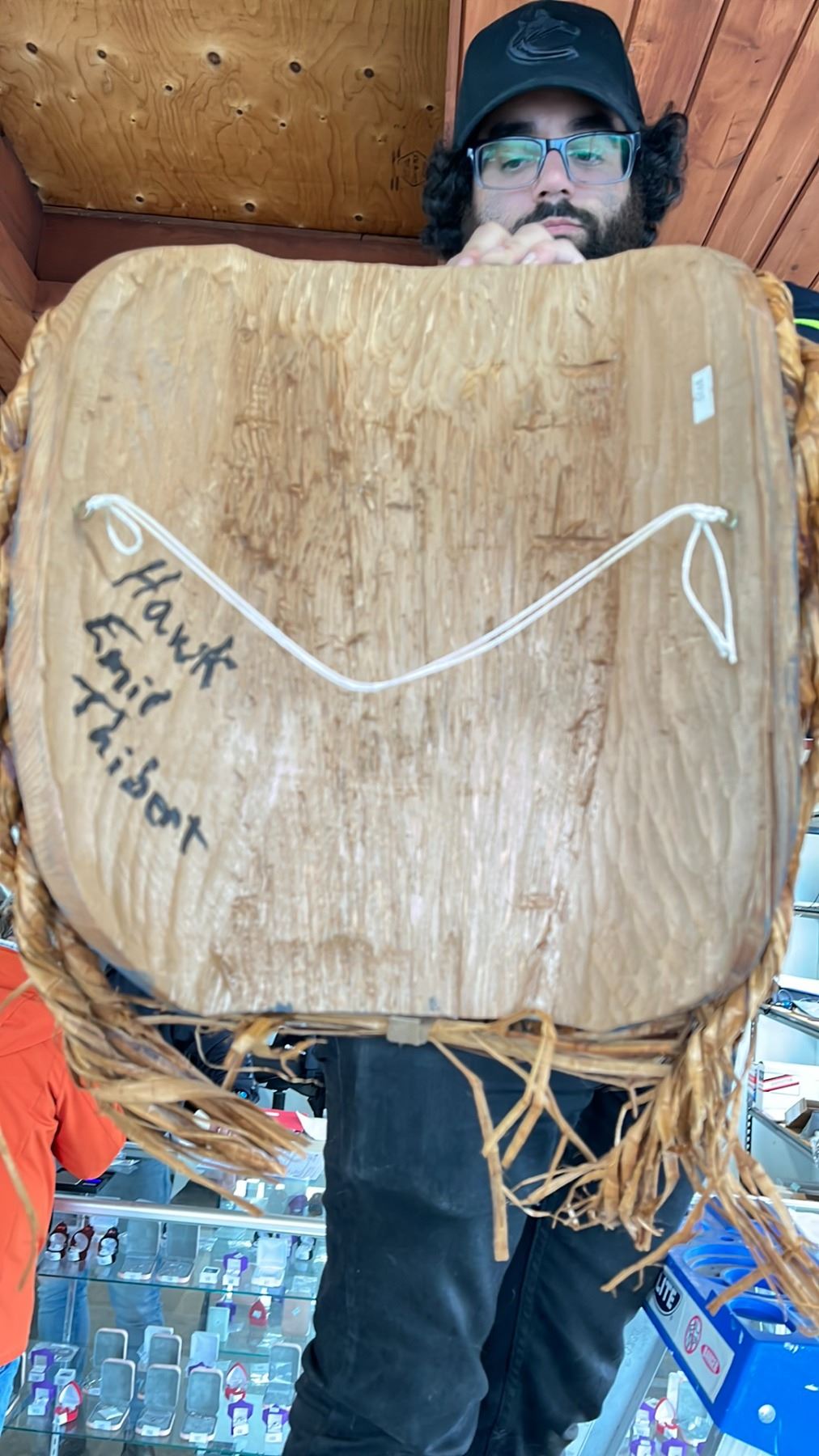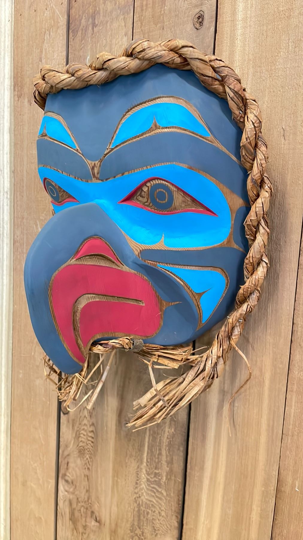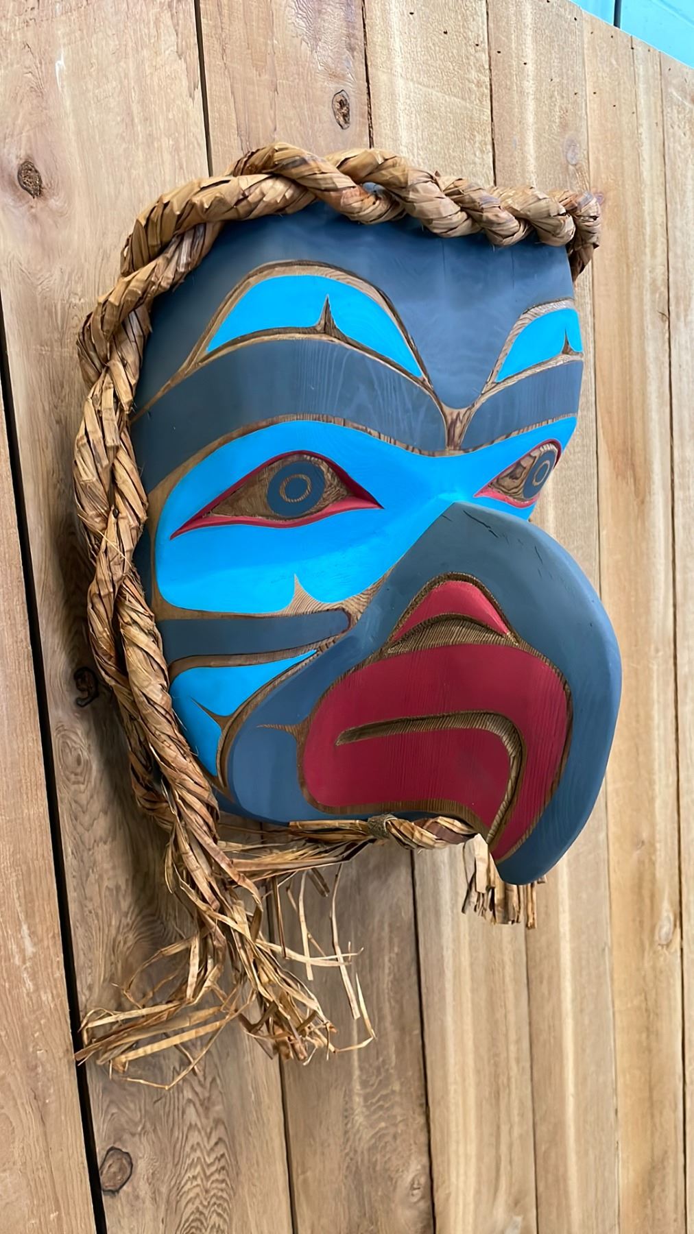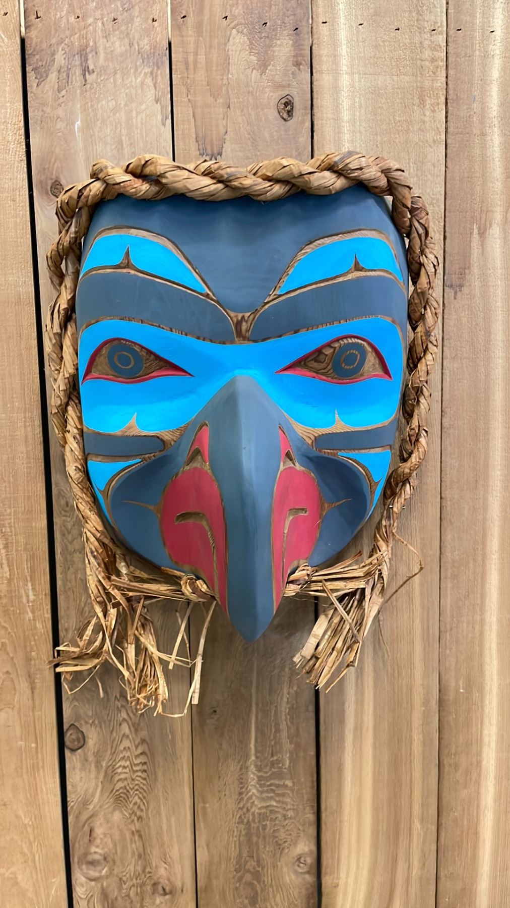 LARGE HAND CARVED FIRST NATIONS HAWK MASK BY EMIL THIBERT APPROX 15X15"