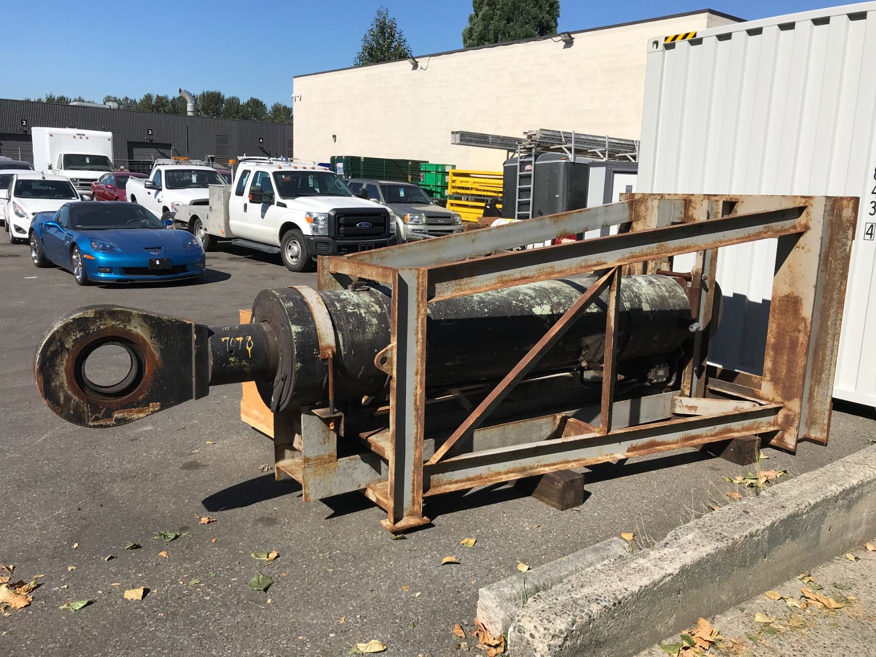LARGE INDUSTRIAL DEMAG HYDRAULIC CYLINDER ON TRANSPORT STAND