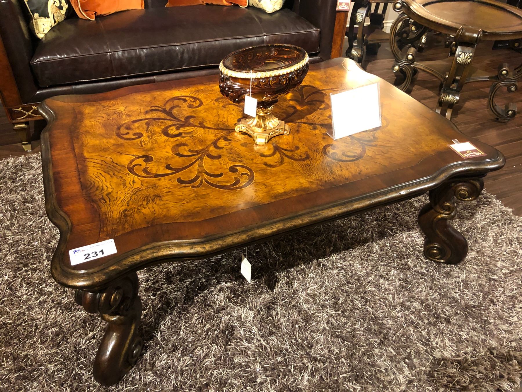 LARGE INLAYED COFFEE TABLE. RETAIL $2,480.00