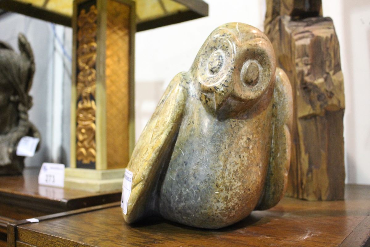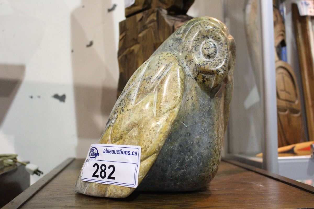 LARGE INUIT SOAPSTONE CARVED OWL