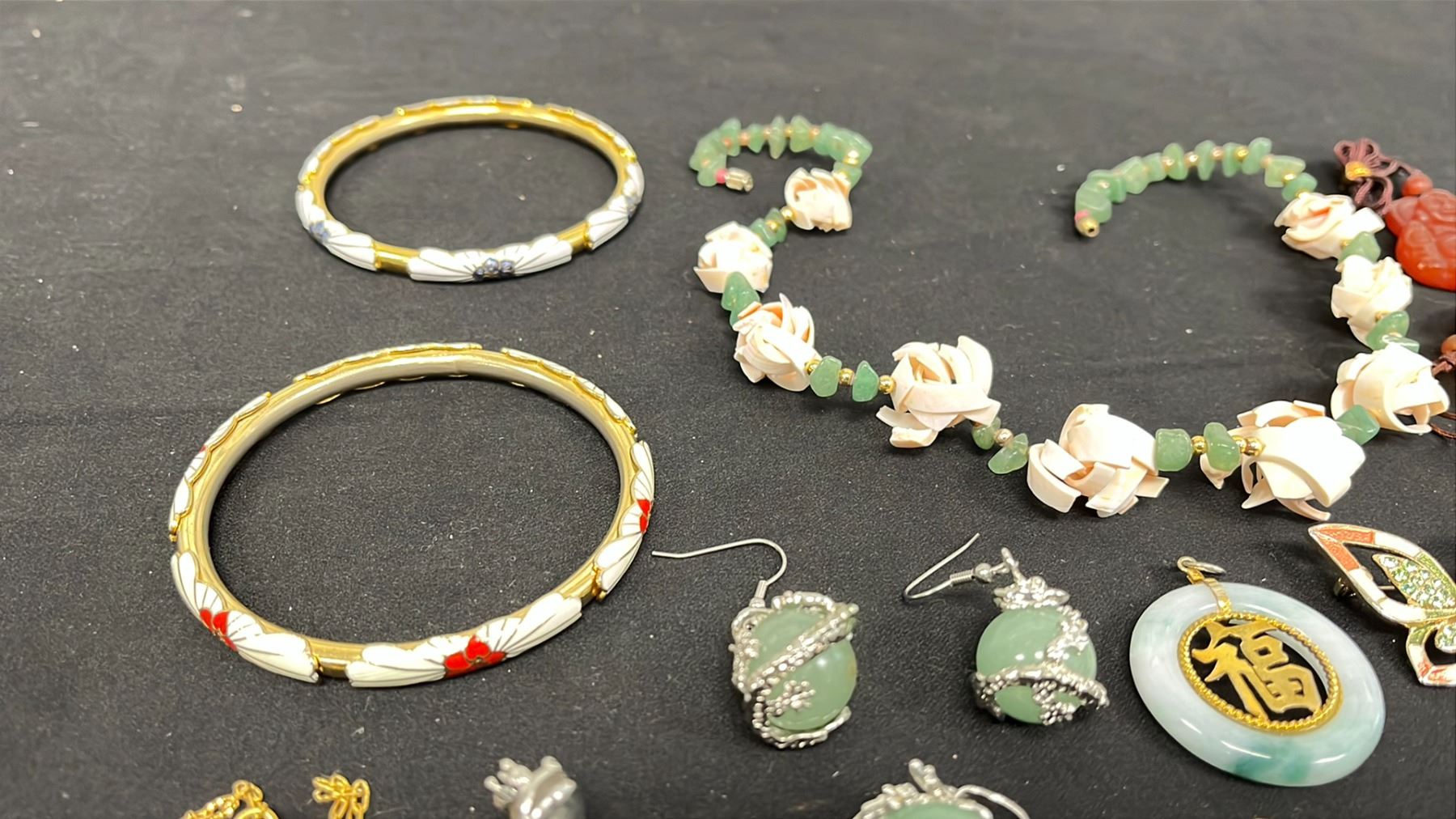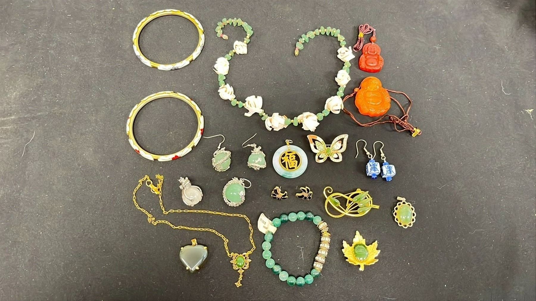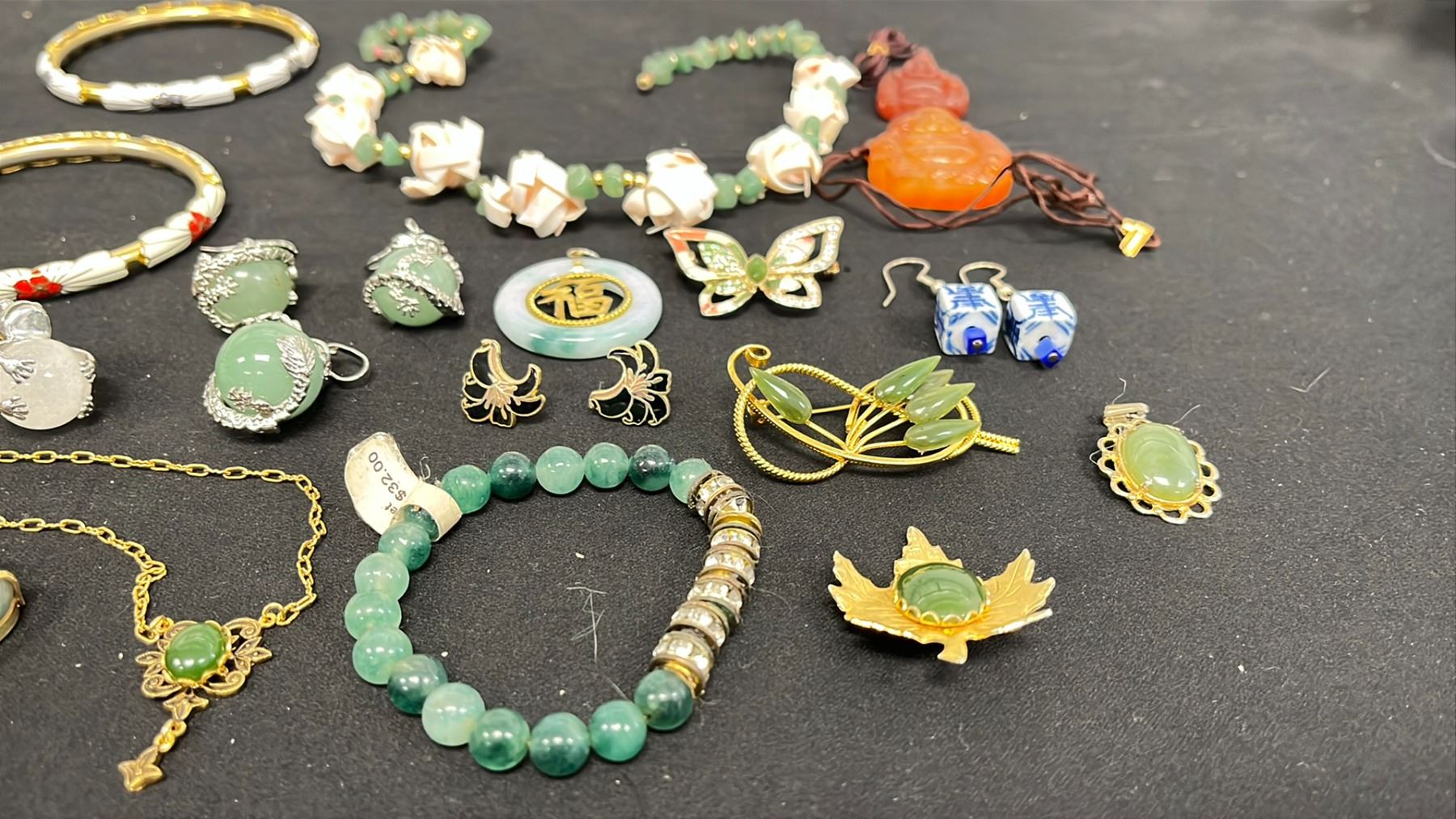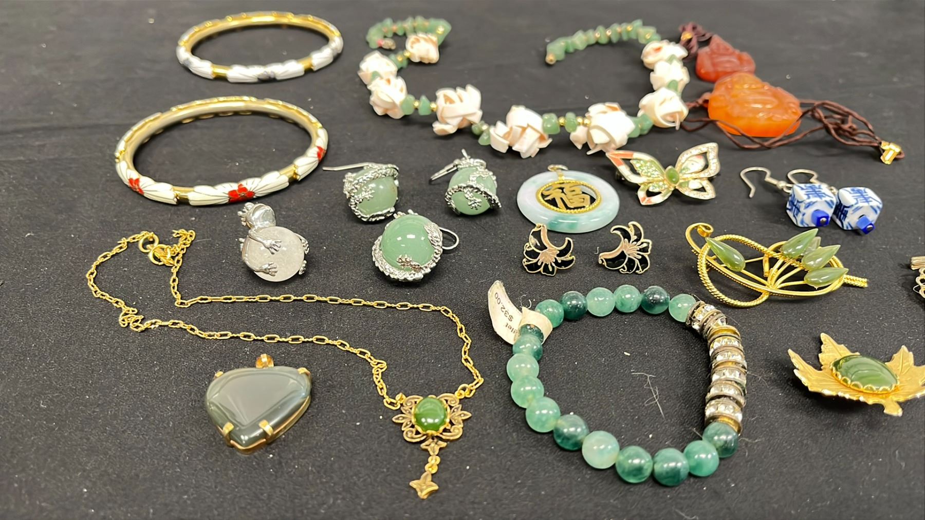 LARGE JADE JEWELRY LOT BANGLES EARRINGS PENDANTS NECKLACES