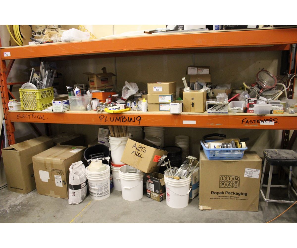 LARGE LOT CONTAINING THE CONTENTS OF ORANGE PALLET RACKING