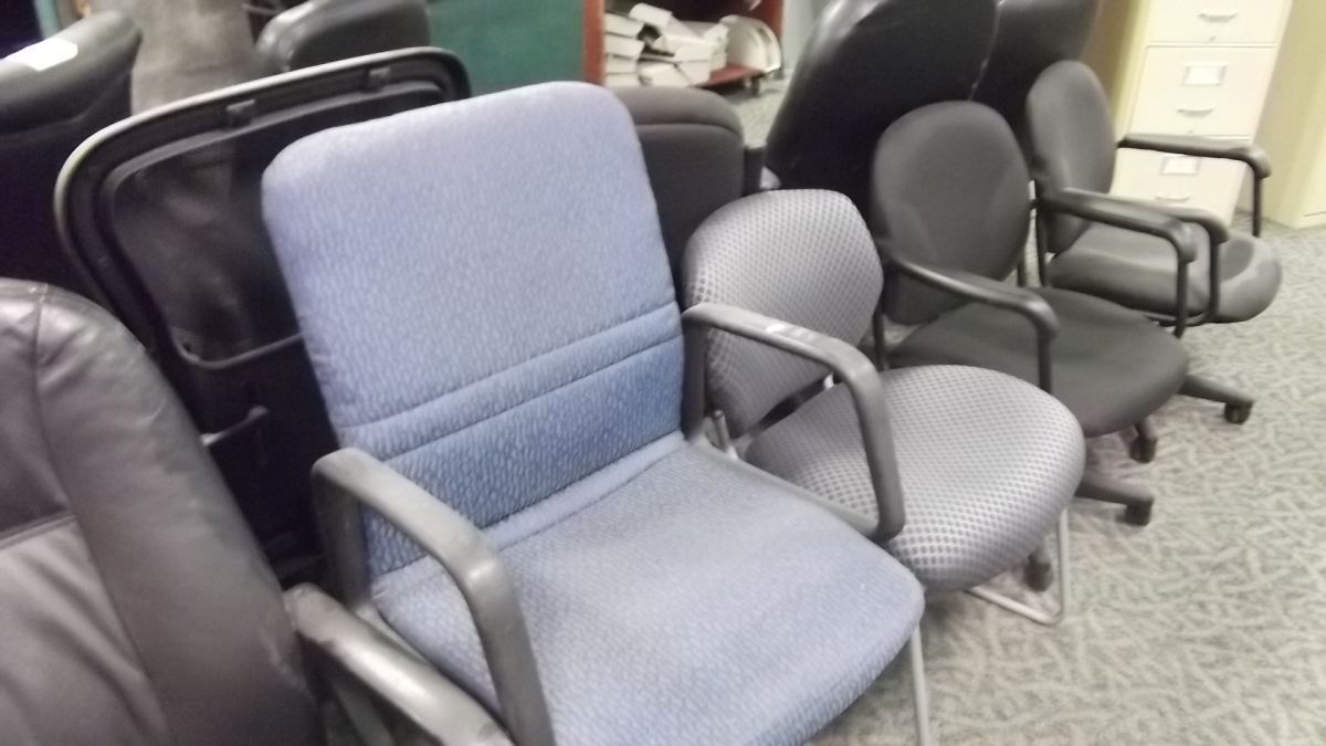 LARGE LOT OF APPROX 15 ASSORTED OFFICE CHAIRS AND A CHRISTMAS TREE
