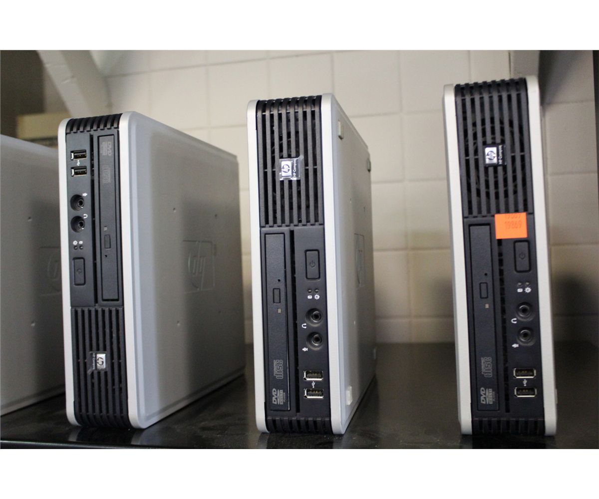 LARGE LOT OF APROX. 50 HP DUO CORE MICRO COMPUTERS 47 POWER SUPPLIES, NO HARD DRIVES
