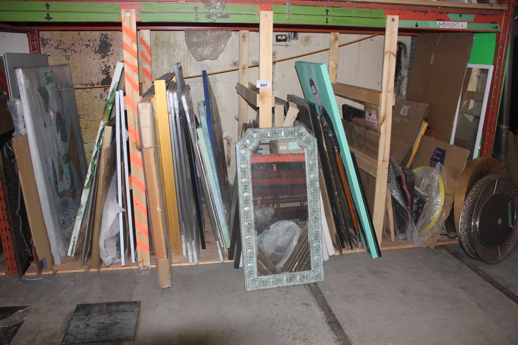 LARGE LOT OF ARTWORK UNDER PALLET RACKING