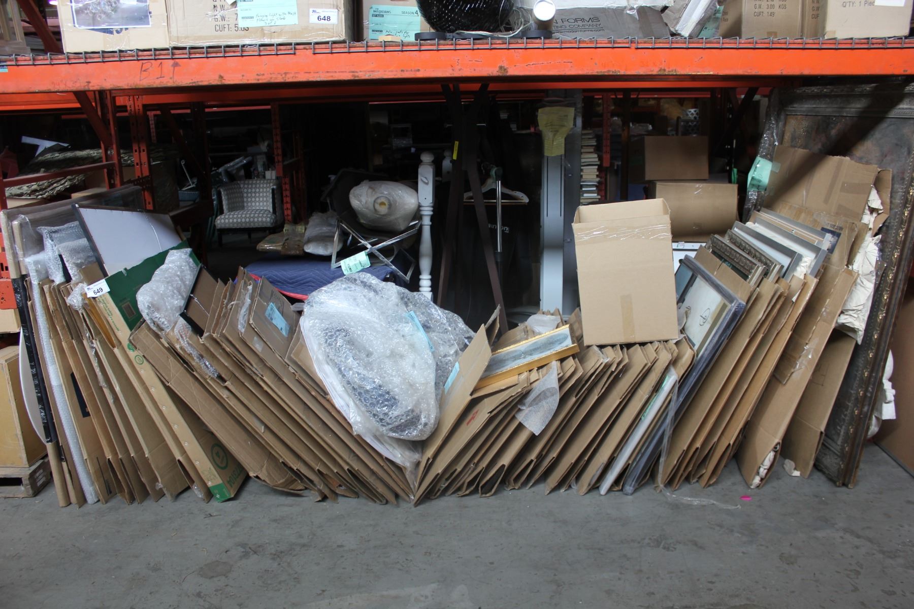 LARGE LOT OF ARTWORK UNDERNEATH PALLET RACKING